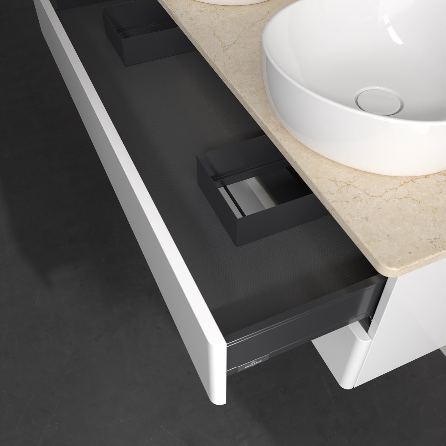 - kein Umfallen oder Verrutschen von Pflegeprodukten in den Schubladen dank rutschhemmendem Boden