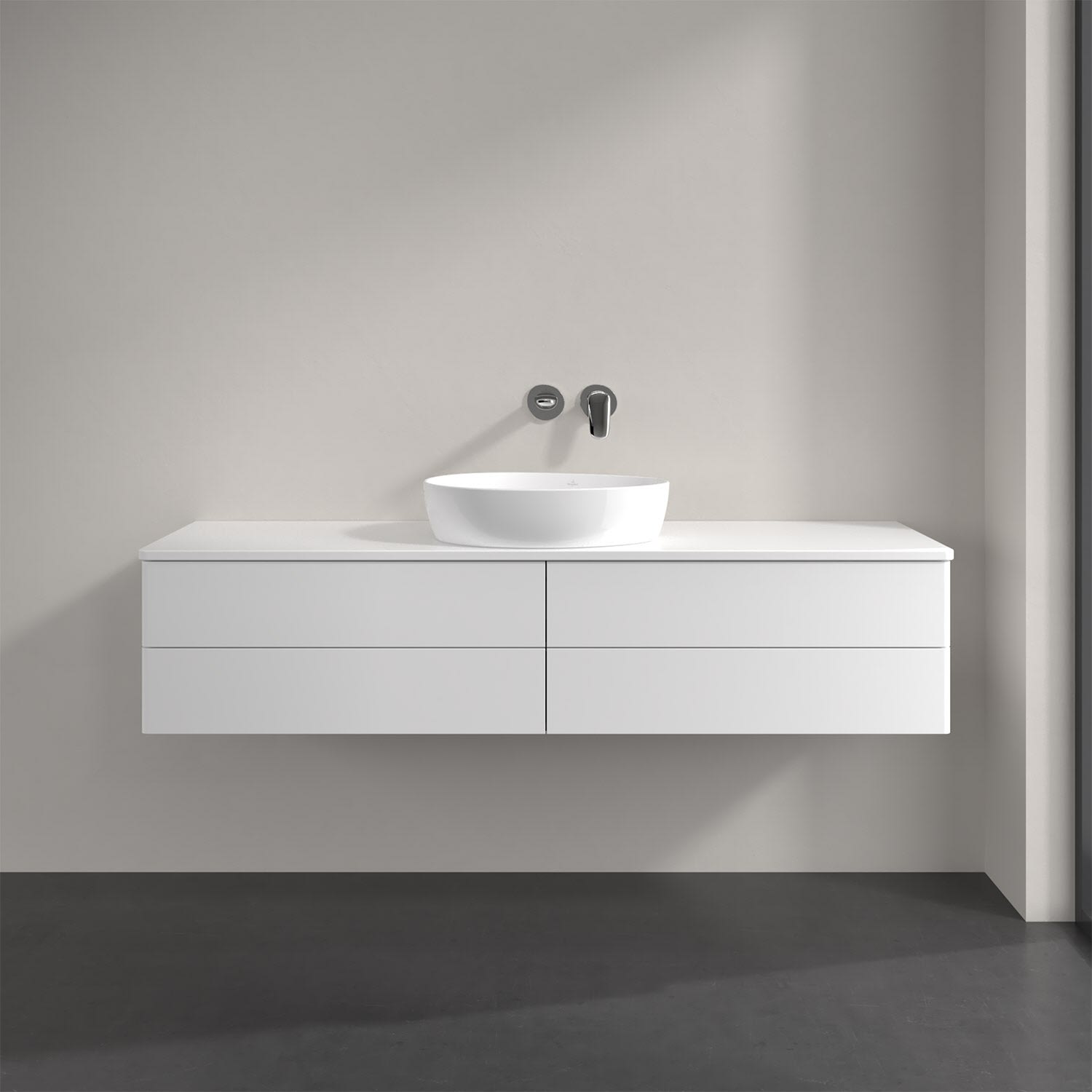 Villeroy & Boch Antao Waschbeckenunterschrank, 160 x 36 cm, 4 Auszüge mit LED-Licht, Front ohne Struktur, mit Hahnloch, für Waschtisch mittig