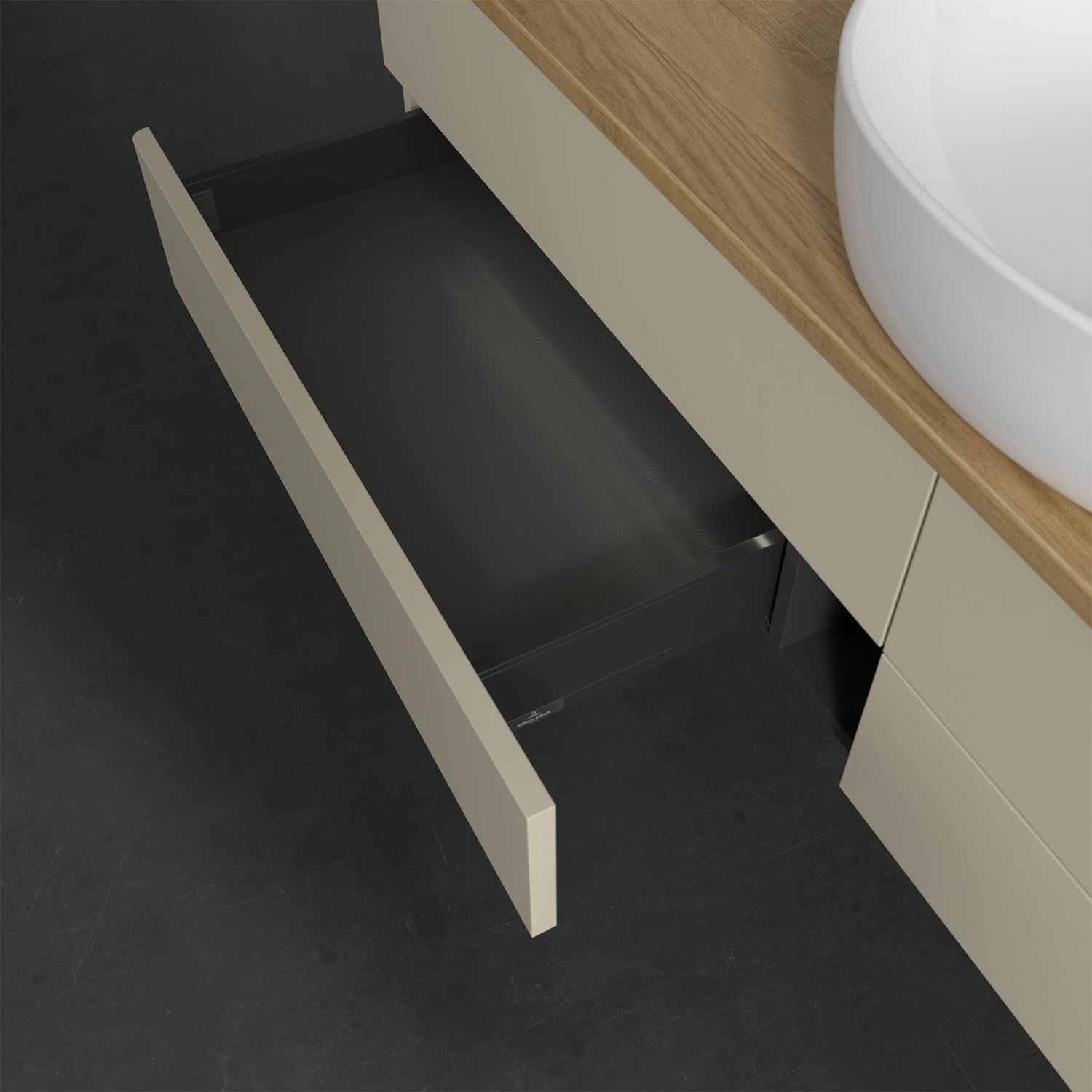 - kein Umfallen oder Verrutschen von Pflegeprodukten in den Schubladen dank rutschhemmendem Boden