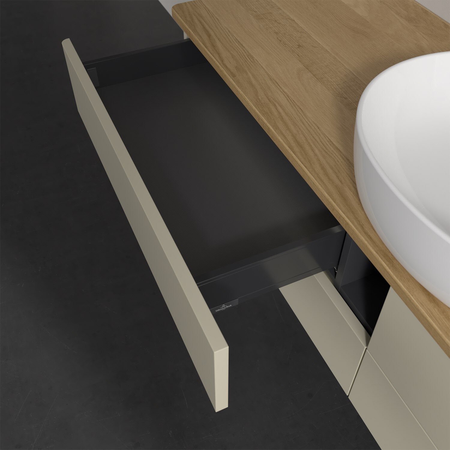 Der wandhängende Antao Waschtischunterschrank bietet mit seinen vier Auszügen und seiner erstaunlichen Größe viel Platz zum Verstauen von Utensilien im Badezimmer. Dank des mittig platzierten Aufsatzwaschtischs gibt es seitlich weiteren Platz für Handtücher, Seifenspender & Co. auf der Waschtischplatte. Inspiriert von der Natur überzeugt der Unterschrank auch optisch mit sanfter Formsprache und abgerundete Kanten. Die grifflosen Auszüge sind mit der Push-to-Open Funktion ausgestattet und verfügen über einen Antirutschboden, damit Utensilien sicher verstaut werden können. Den Überblick behält man dank der warmweißen Auszugsbeleuchtung, die sich automatisch beim Öffnen einschaltet. Mit seiner Vollauszug- und Selbsteinzug-Funktion ist der Schrank praktisch und leicht zu bedienen. Qualität von Villeroy & Boch! Für eine besonders leichte Pflege sorgt die mehrschichtig deckend lackierte Oberfläche. Bei der Ausführung in Massivholz wird dank des verarbeiteten Massivholzes jedes Möbel zu einem Unikat, das sich durch das lebendige Naturmaterial durch seine einzigartige Struktur und Maserung auszeichnet.