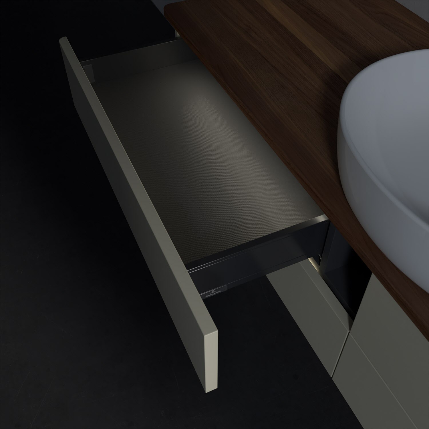 Villeroy & Boch Antao Waschbeckenunterschrank, 160 x 36 cm, 4 Auszüge mit LED-Licht, Front ohne Struktur, mit Hahnloch, für Waschtisch mittig