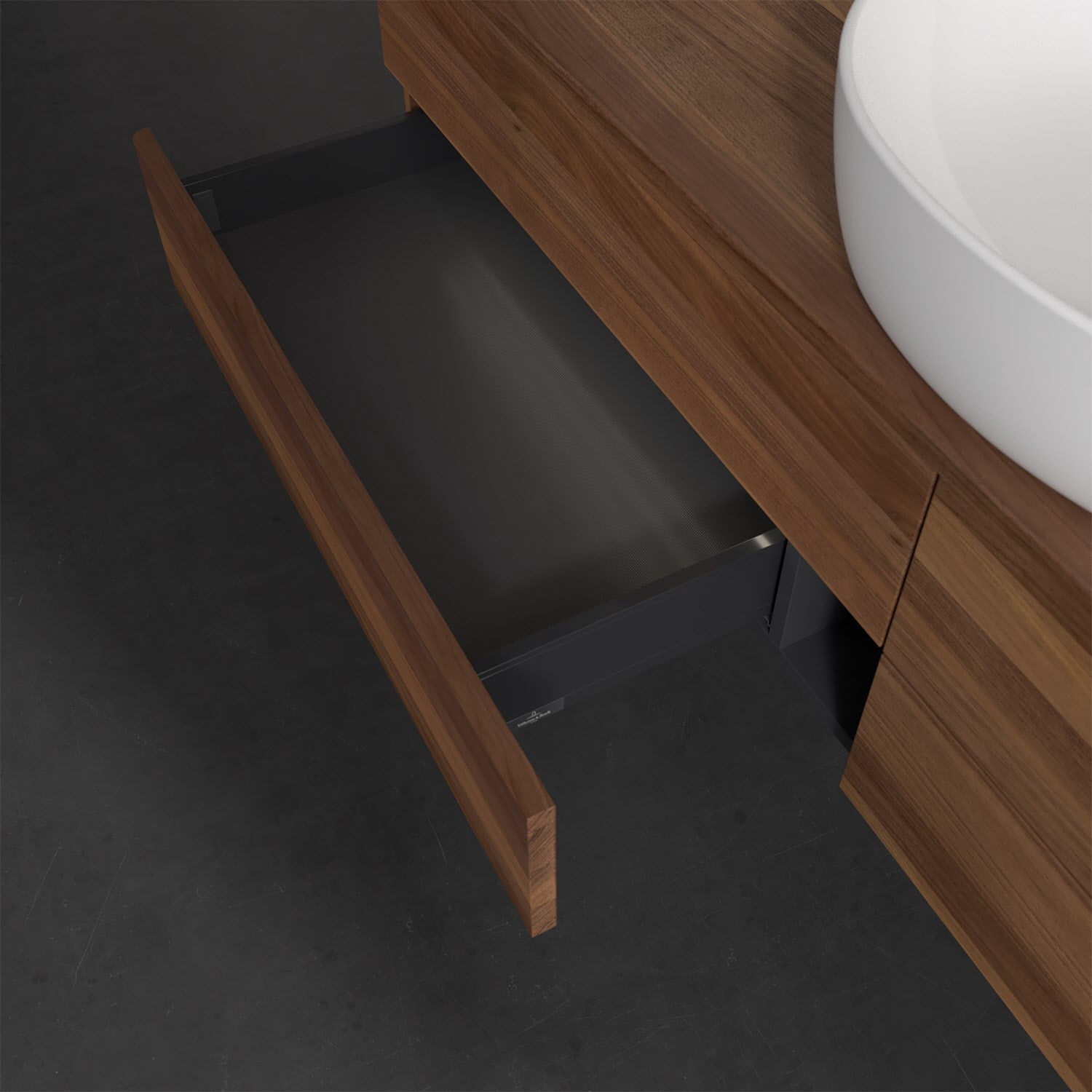 Villeroy & Boch Antao Waschbeckenunterschrank, 160 x 36 cm, 4 Auszüge mit LED-Licht, Front ohne Struktur, mit Hahnloch, für Waschtisch mittig