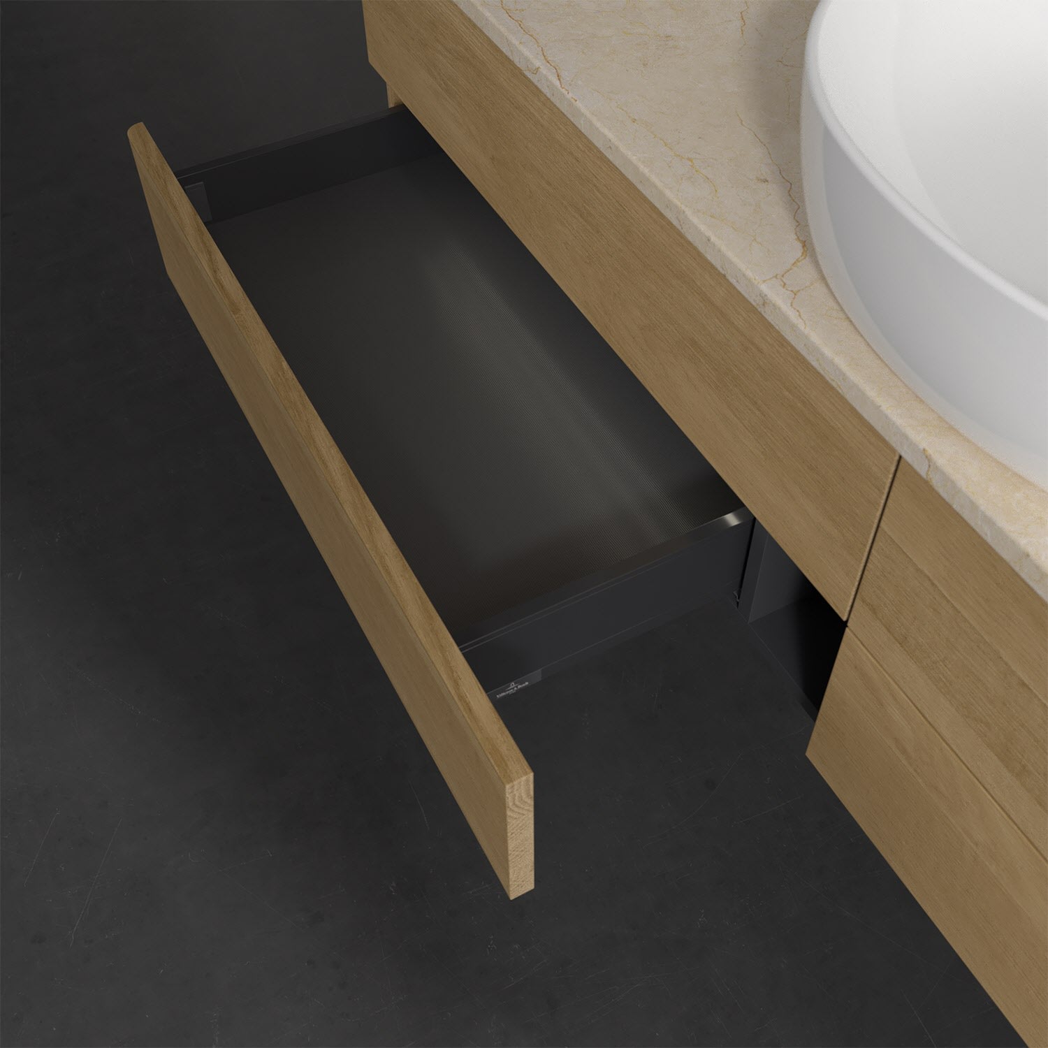 - kein Umfallen oder Verrutschen von Pflegeprodukten in den Schubladen dank rutschhemmendem Boden