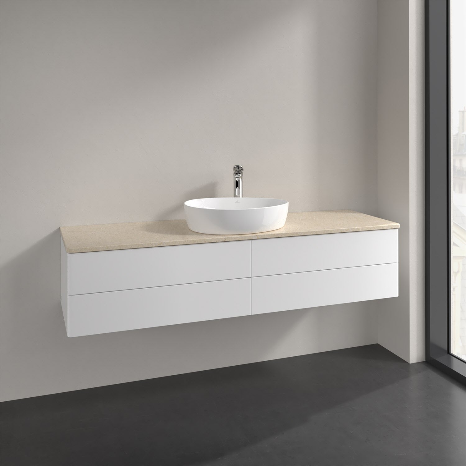 Der wandhängende Antao Waschtischunterschrank bietet mit seinen vier Auszügen und seiner erstaunlichen Größe viel Platz zum Verstauen von Utensilien im Badezimmer. Dank des mittig platzierten Aufsatzwaschtischs gibt es seitlich weiteren Platz für Handtücher, Seifenspender & Co. auf der Waschtischplatte. Inspiriert von der Natur überzeugt der Unterschrank auch optisch mit sanfter Formsprache und abgerundete Kanten. Die grifflosen Auszüge sind mit der Push-to-Open Funktion ausgestattet und verfügen über einen Antirutschboden, damit Utensilien sicher verstaut werden können. Den Überblick behält man dank der warmweißen Auszugsbeleuchtung, die sich automatisch beim Öffnen einschaltet. Mit seiner Vollauszug- und Selbsteinzug-Funktion ist der Schrank praktisch und leicht zu bedienen. Qualität von Villeroy & Boch! Für eine besonders leichte Pflege sorgt die mehrschichtig deckend lackierte Oberfläche. Bei der Ausführung in Massivholz wird dank des verarbeiteten Massivholzes jedes Möbel zu einem Unikat, das sich durch das lebendige Naturmaterial durch seine einzigartige Struktur und Maserung auszeichnet.