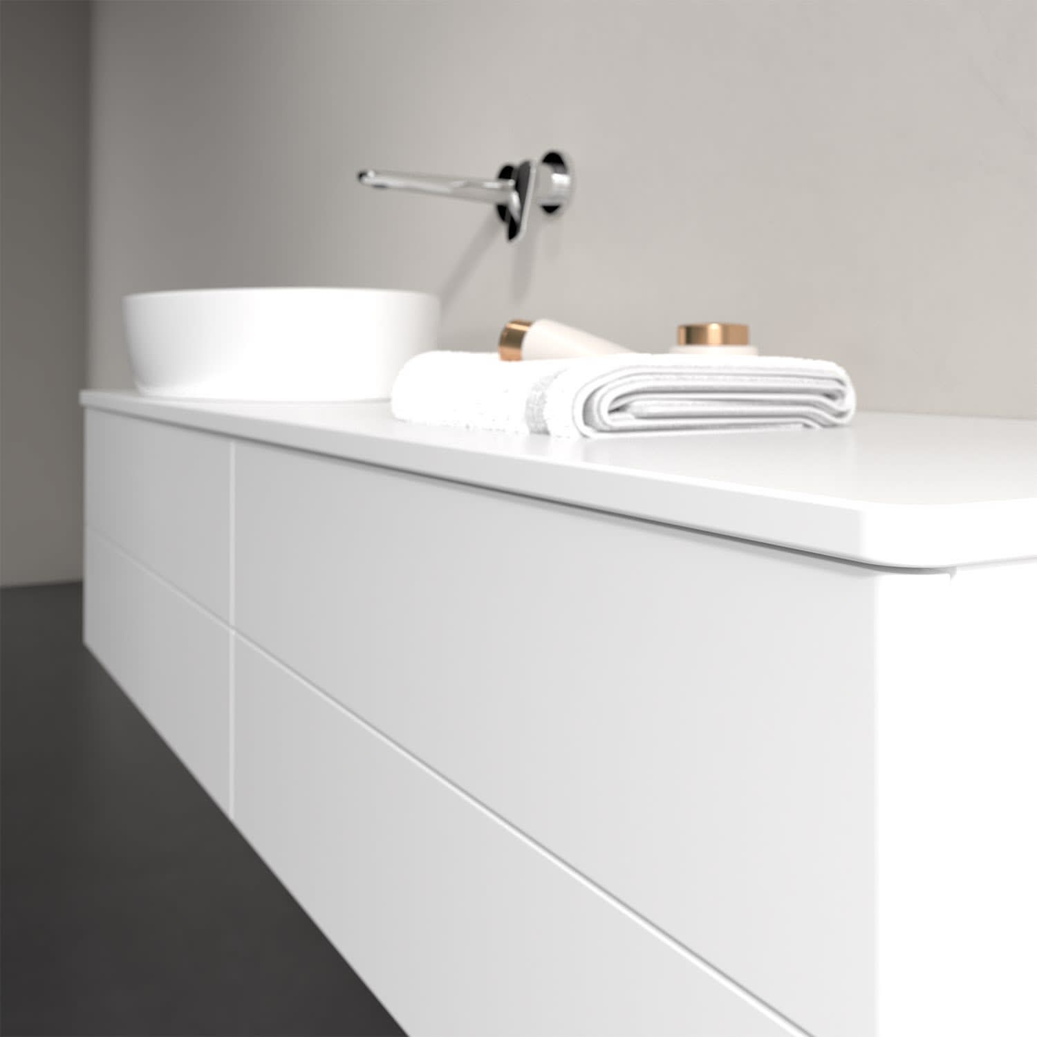 Der wandhängende Antao Waschtischunterschrank bietet mit seinen vier Auszügen und seiner erstaunlichen Größe viel Platz zum Verstauen von Utensilien im Badezimmer. Dank des seitlich platzierten Aufsatzwaschtischs gibt es daneben weiteren Platz für Handtücher, Seifenspender & Co. auf der Waschtischplatte. Inspiriert von der Natur überzeugt der Unterschrank auch optisch mit sanfter Formsprache und abgerundete Kanten. Die grifflosen Auszüge sind mit der Push-to-Open Funktion ausgestattet und verfügen über einen Antirutschboden, damit Utensilien sicher verstaut werden können. Den Überblick behält man dank der warmweißen Auszugsbeleuchtung, die sich automatisch beim Öffnen einschaltet. Mit seiner Vollauszug- und Selbsteinzug-Funktion ist der Schrank praktisch und leicht zu bedienen. Qualität von Villeroy & Boch! Für eine besonders leichte Pflege sorgt die mehrschichtig deckend lackierte Oberfläche.