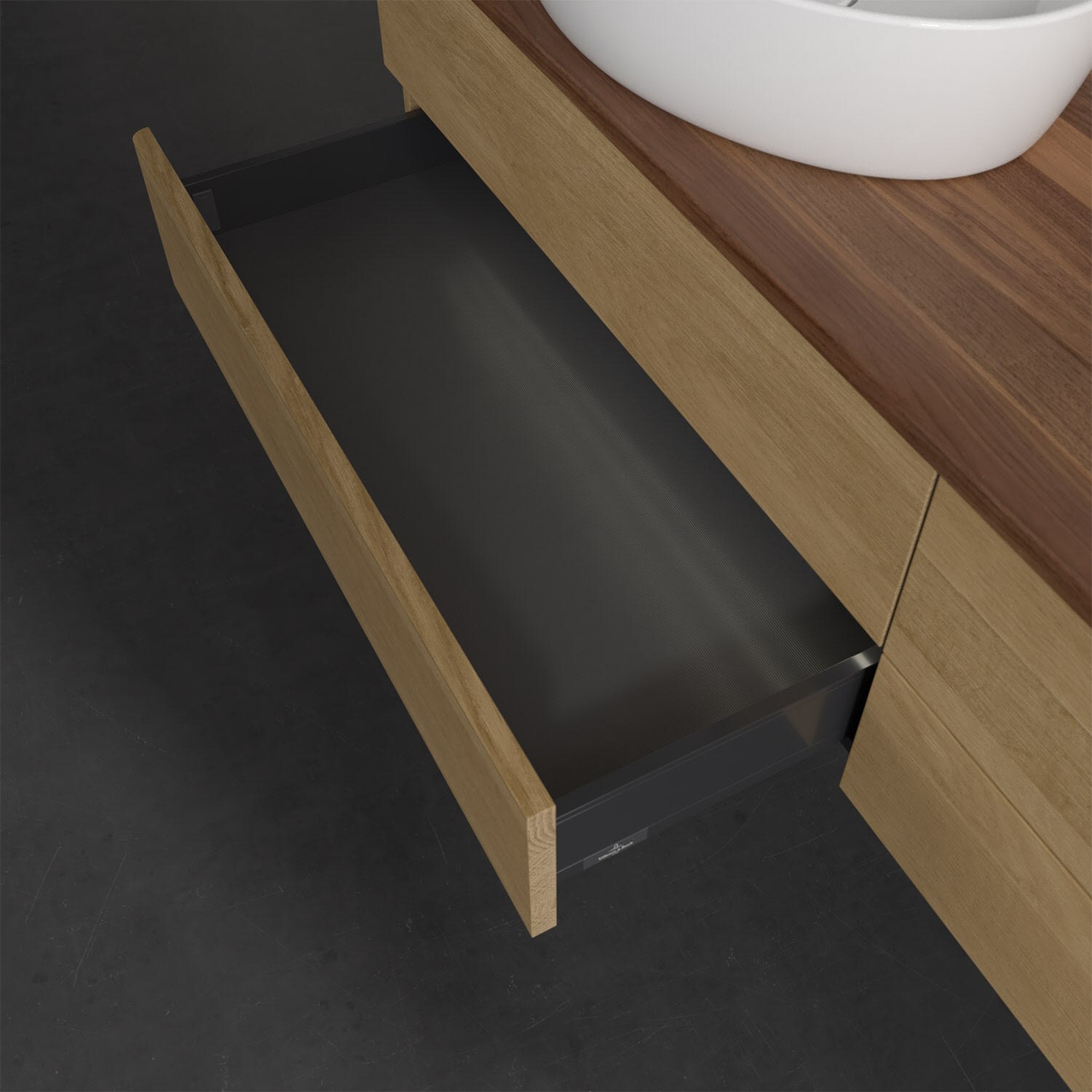 - kein Umfallen oder Verrutschen von Pflegeprodukten in den Schubladen dank rutschhemmendem Boden