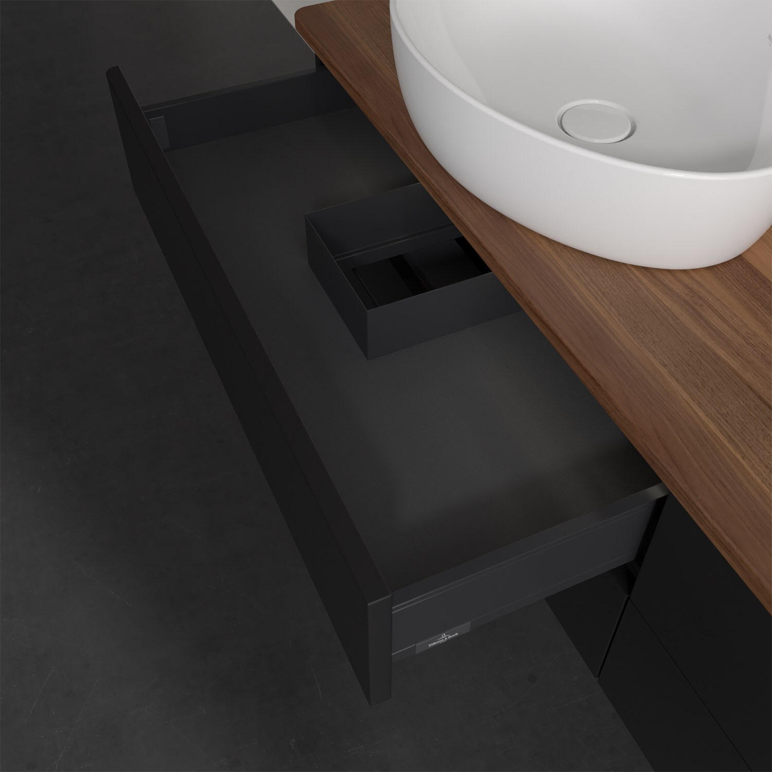 Villeroy & Boch Antao Waschbeckenunterschrank, 160 x 36 cm, 4 Auszüge mit LED-Licht, Front ohne Struktur, mit Hahnloch, für Waschtisch links