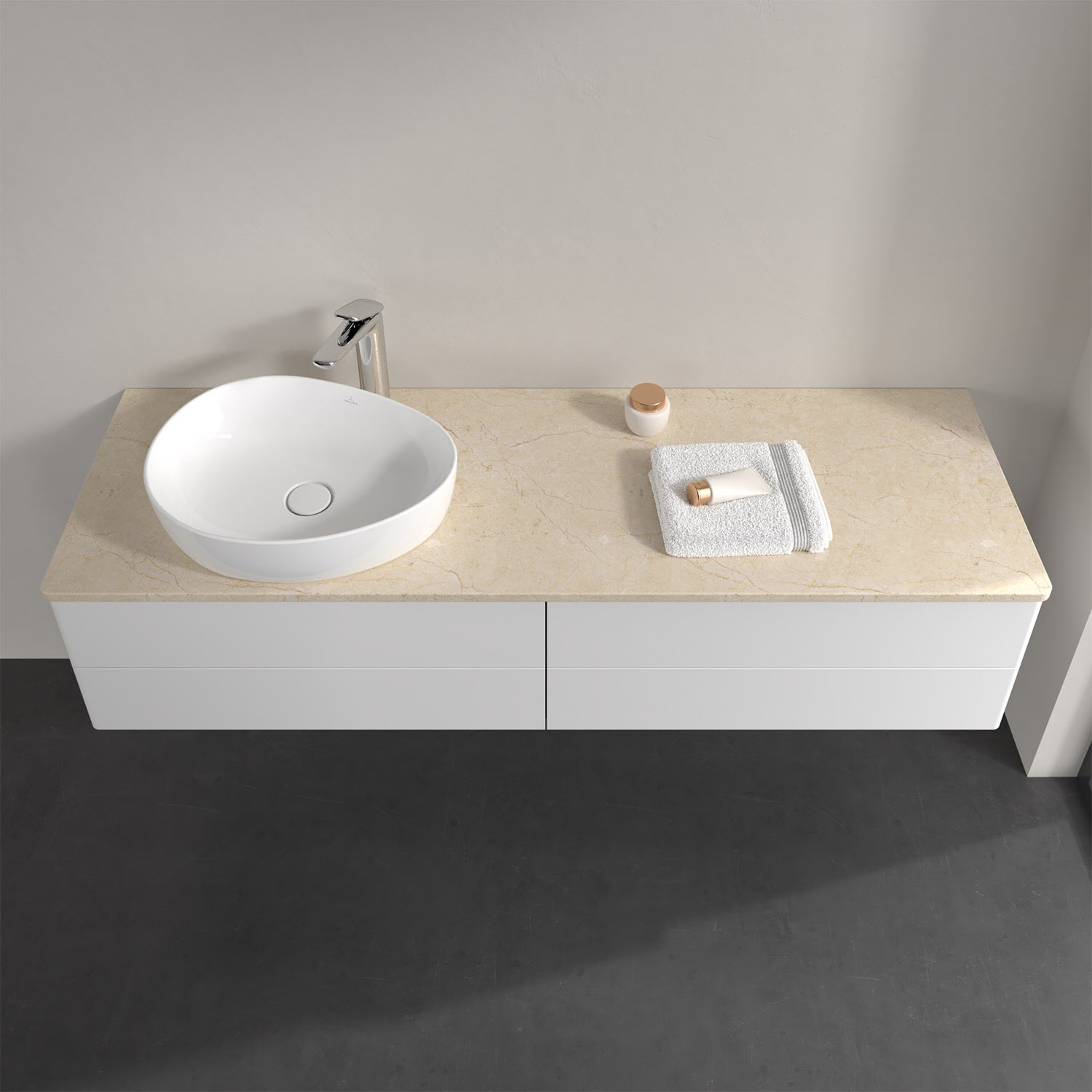 Villeroy & Boch Antao Waschbeckenunterschrank, 160 x 36 cm, 4 Auszüge mit LED-Licht, Front ohne Struktur, mit Hahnloch, für Waschtisch links