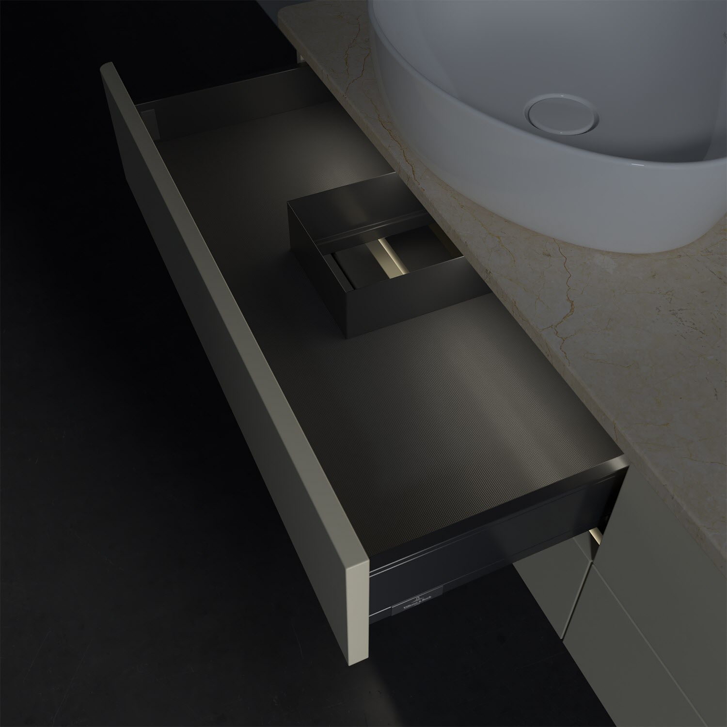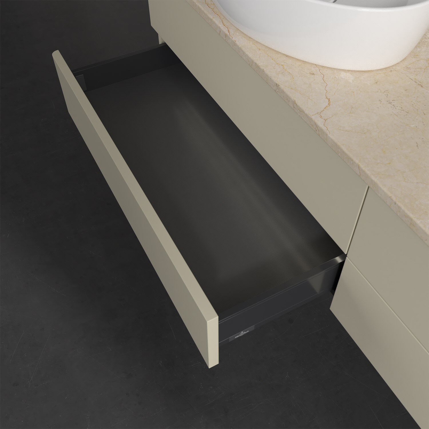 - kein Umfallen oder Verrutschen von Pflegeprodukten in den Schubladen dank rutschhemmendem Boden