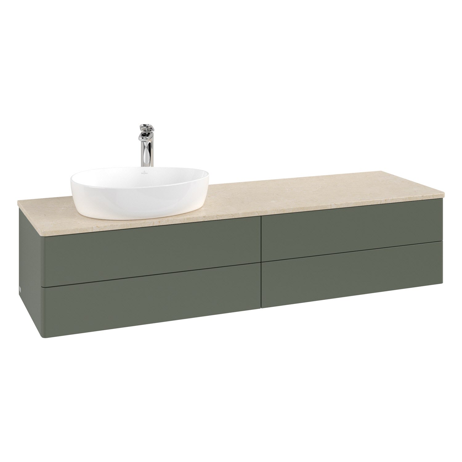 Villeroy & Boch Antao Waschbeckenunterschrank, 160 x 36 cm, 4 Auszüge mit LED-Licht, Front ohne Struktur, mit Hahnloch, für Waschtisch links