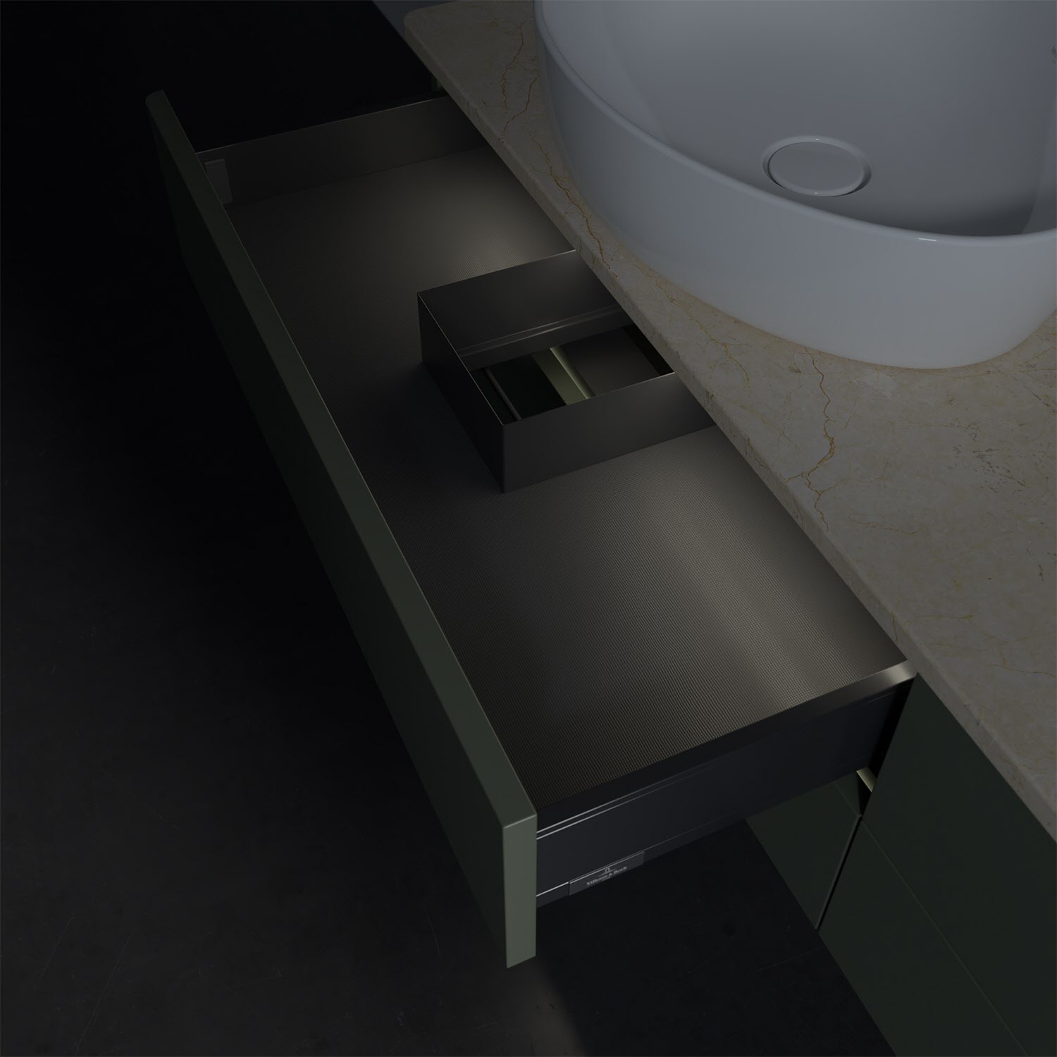 - kein Umfallen oder Verrutschen von Pflegeprodukten in den Schubladen dank rutschhemmendem Boden
