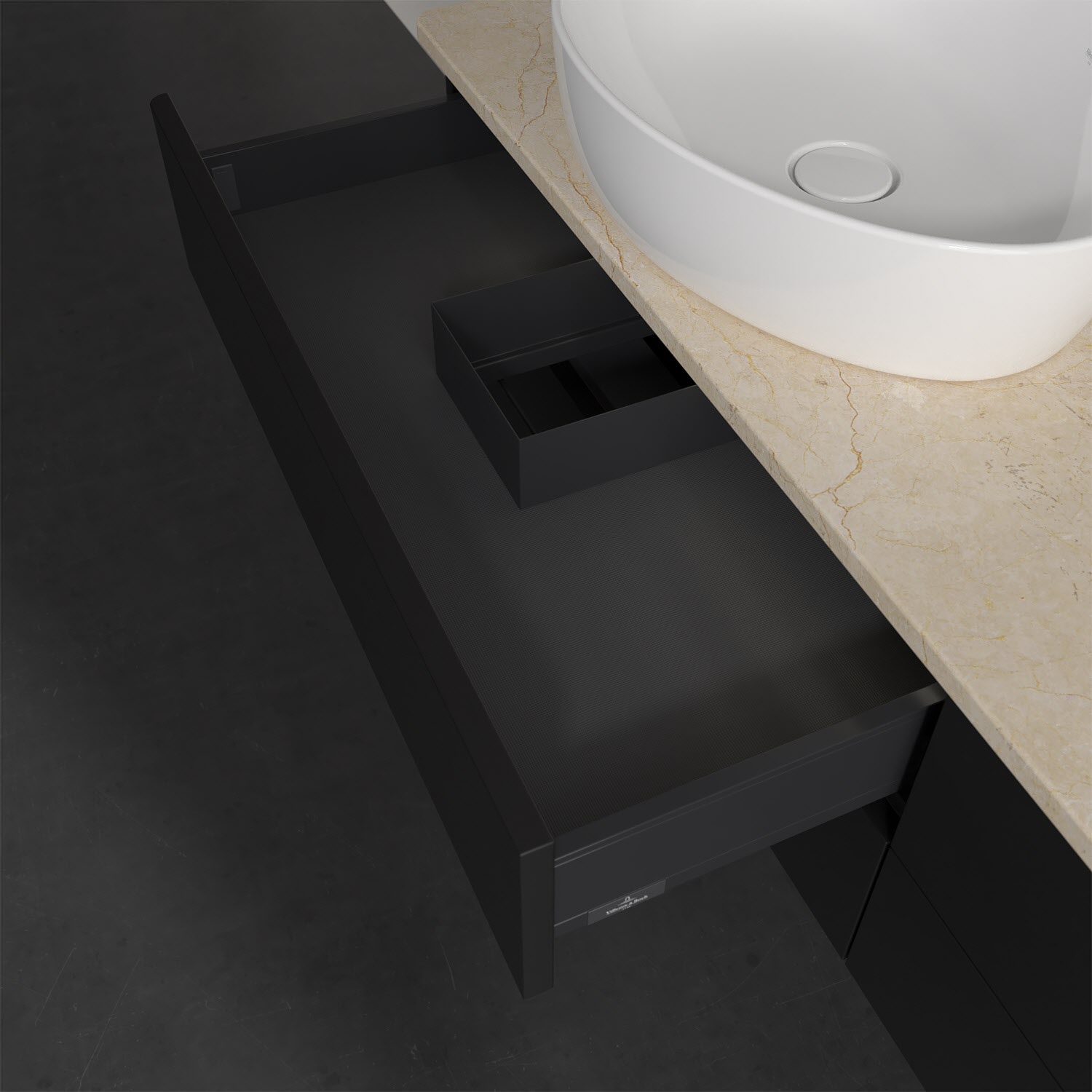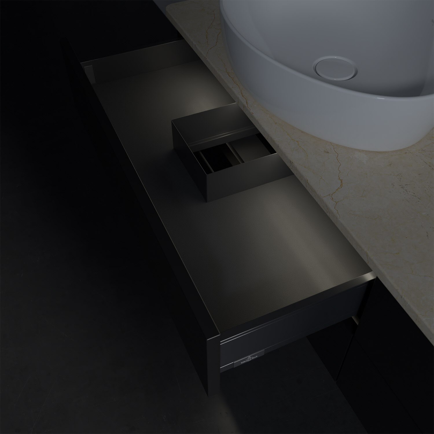 Villeroy & Boch Antao Waschbeckenunterschrank, 160 x 36 cm, 4 Auszüge mit LED-Licht, Front ohne Struktur, mit Hahnloch, für Waschtisch links