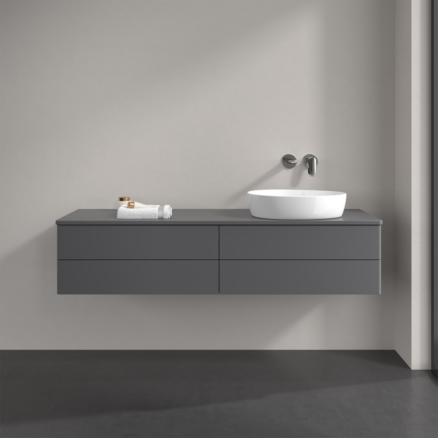 Villeroy & Boch Antao Waschbeckenunterschrank, 160 x 36 cm, 4 Auszüge mit LED-Licht, Front ohne Struktur, mit Hahnloch, für Waschtisch rechts