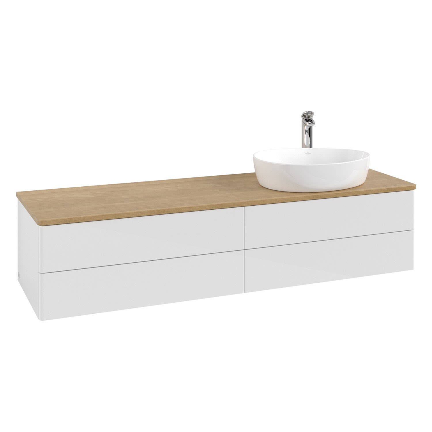 Der wandhängende Antao Waschtischunterschrank bietet mit seinen vier Auszügen und seiner erstaunlichen Größe viel Platz zum Verstauen von Utensilien im Badezimmer. Dank des seitlich platzierten Aufsatzwaschtischs gibt es daneben weiteren Platz für Handtücher, Seifenspender & Co. auf der Waschtischplatte. Inspiriert von der Natur überzeugt der Unterschrank auch optisch mit sanfter Formsprache und abgerundete Kanten. Die grifflosen Auszüge sind mit der Push-to-Open Funktion ausgestattet und verfügen über einen Antirutschboden, damit Utensilien sicher verstaut werden können. Den Überblick behält man dank der warmweißen Auszugsbeleuchtung, die sich automatisch beim Öffnen einschaltet. Mit seiner Vollauszug- und Selbsteinzug-Funktion ist der Schrank praktisch und leicht zu bedienen. Qualität von Villeroy & Boch! Für eine besonders leichte Pflege sorgt die mehrschichtig deckend lackierte Oberfläche. Bei der Ausführung in Massivholz wird dank des verarbeiteten Massivholzes jedes Möbel zu einem Unikat, das sich durch das lebendige Naturmaterial durch seine einzigartige Struktur und Maserung auszeichnet.