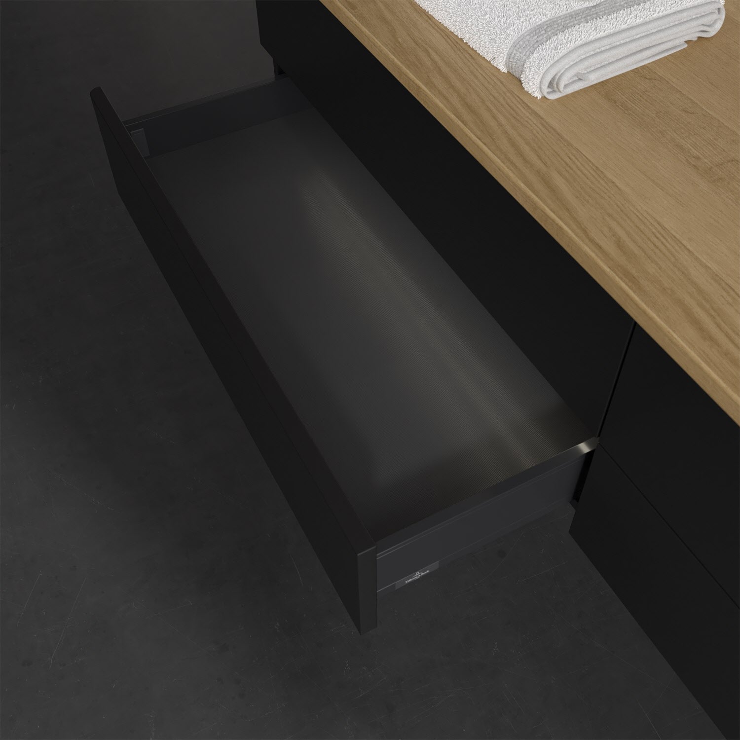 - kein Umfallen oder Verrutschen von Pflegeprodukten in den Schubladen dank rutschhemmendem Boden