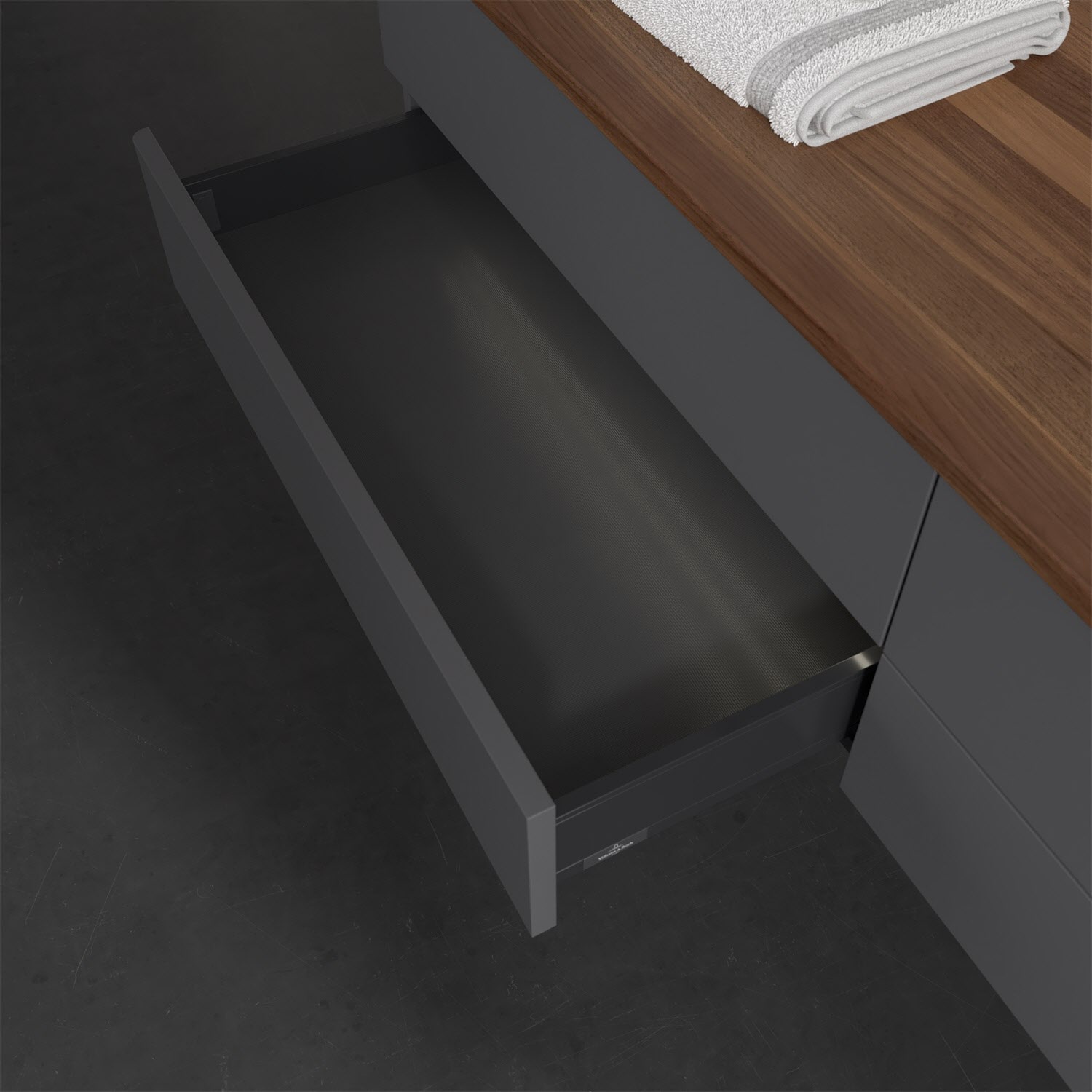 - kein Umfallen oder Verrutschen von Pflegeprodukten in den Schubladen dank rutschhemmendem Boden
