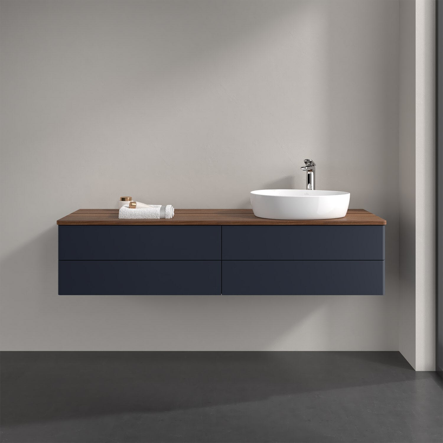 Villeroy & Boch Antao Waschbeckenunterschrank, 160 x 36 cm, 4 Auszüge mit LED-Licht, Front ohne Struktur, mit Hahnloch, für Waschtisch rechts