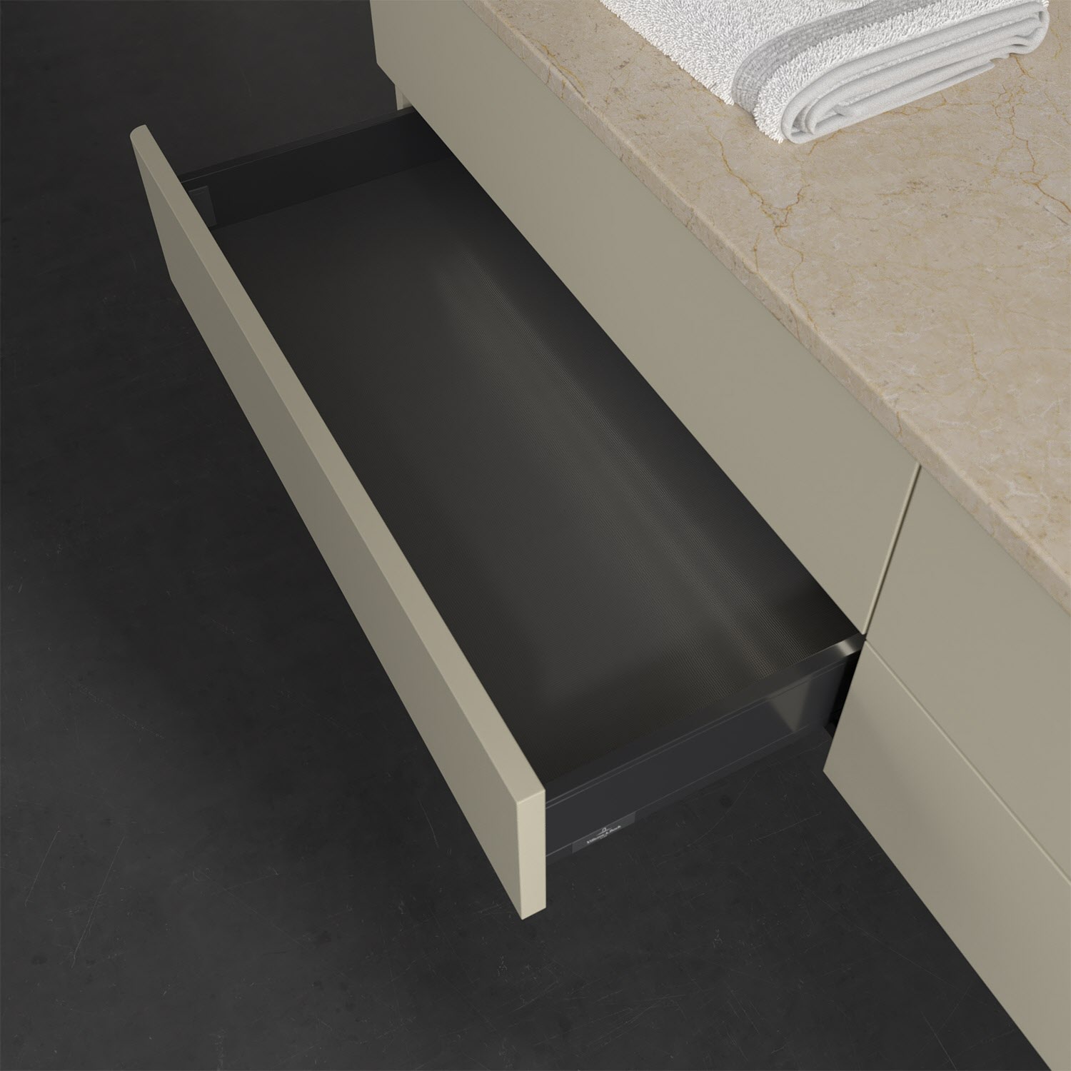 - kein Umfallen oder Verrutschen von Pflegeprodukten in den Schubladen dank rutschhemmendem Boden