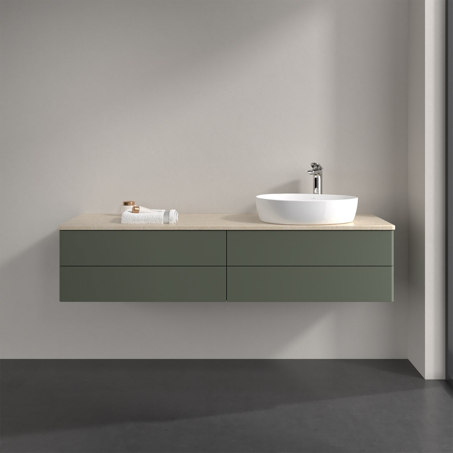 Villeroy & Boch Antao Waschbeckenunterschrank, 160 x 36 cm, 4 Auszüge mit LED-Licht, Front ohne Struktur, mit Hahnloch, für Waschtisch rechts