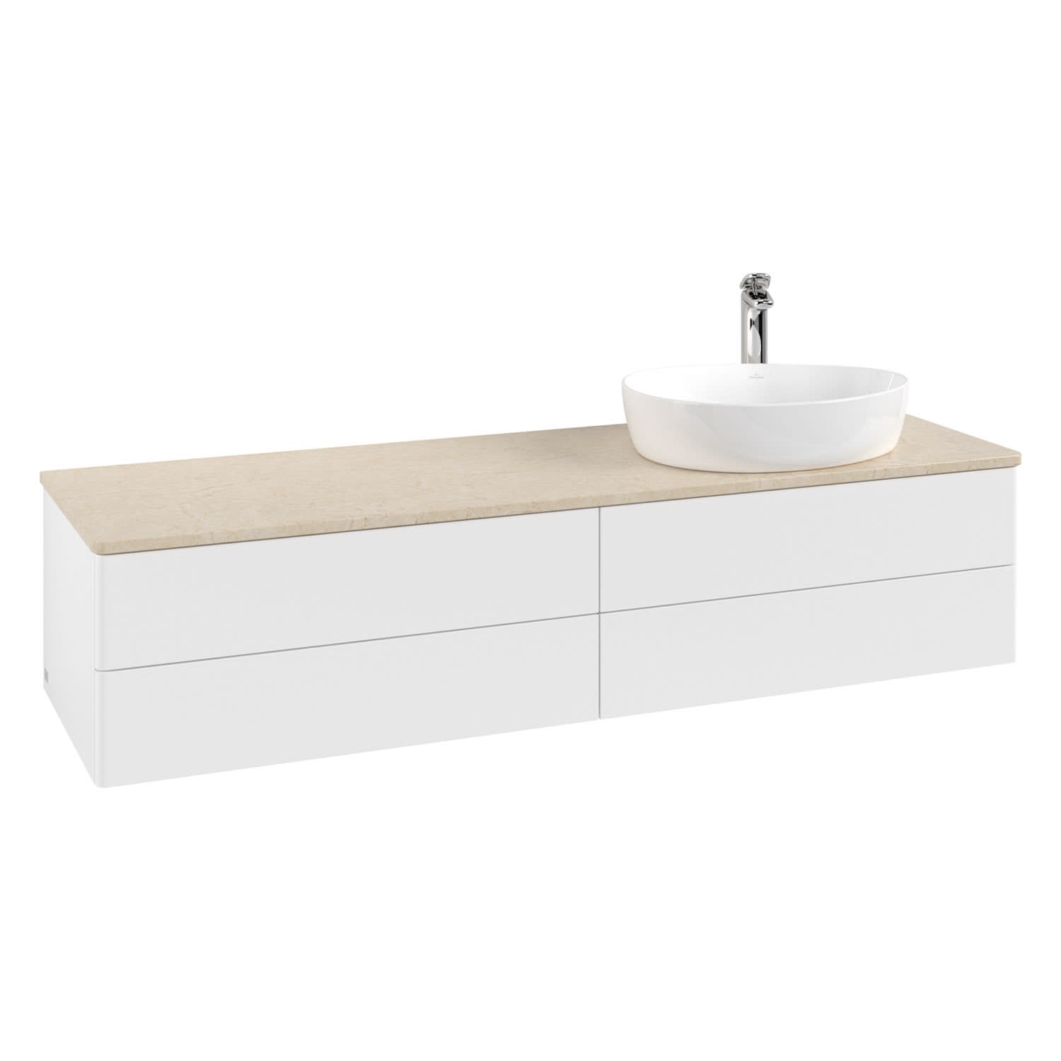 Villeroy & Boch Antao Waschbeckenunterschrank, 160 x 36 cm, 4 Auszüge mit LED-Licht, Front ohne Struktur, mit Hahnloch, für Waschtisch rechts