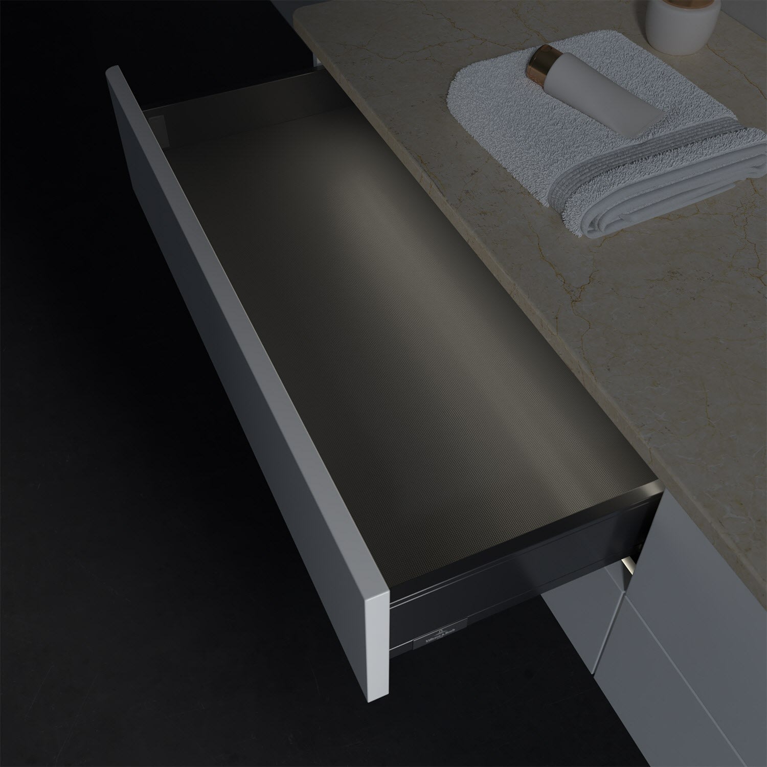 - kein Umfallen oder Verrutschen von Pflegeprodukten in den Schubladen dank rutschhemmendem Boden