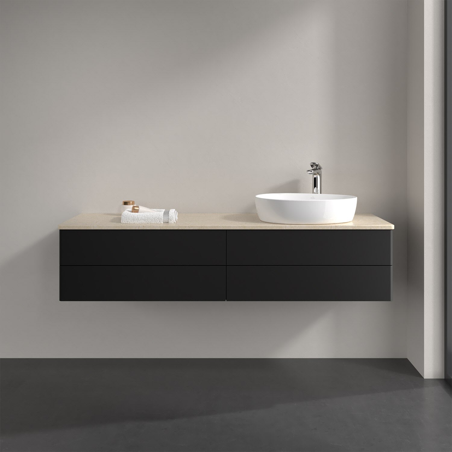 Villeroy & Boch Antao Waschbeckenunterschrank, 160 x 36 cm, 4 Auszüge mit LED-Licht, Front ohne Struktur, mit Hahnloch, für Waschtisch rechts