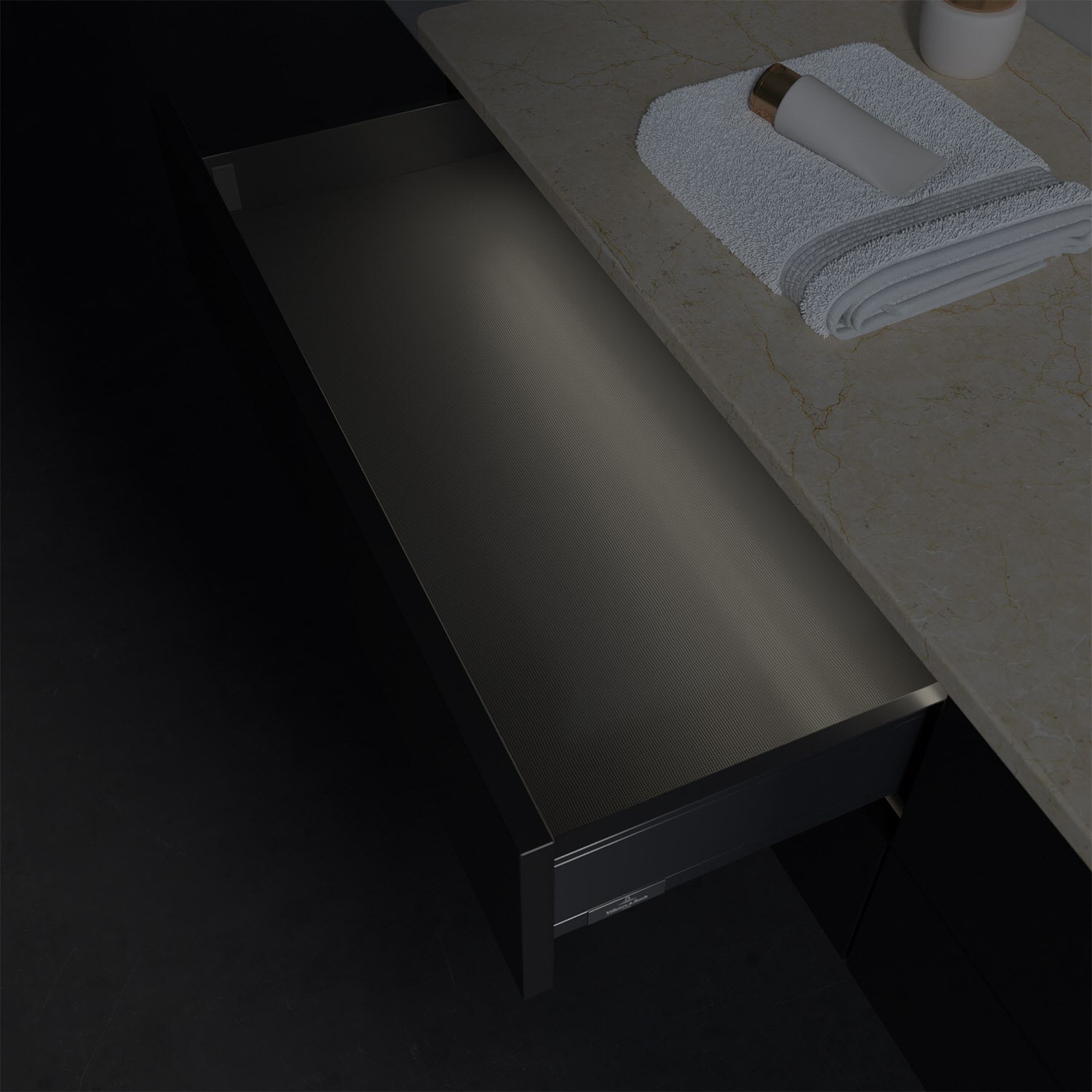 - kein Umfallen oder Verrutschen von Pflegeprodukten in den Schubladen dank rutschhemmendem Boden