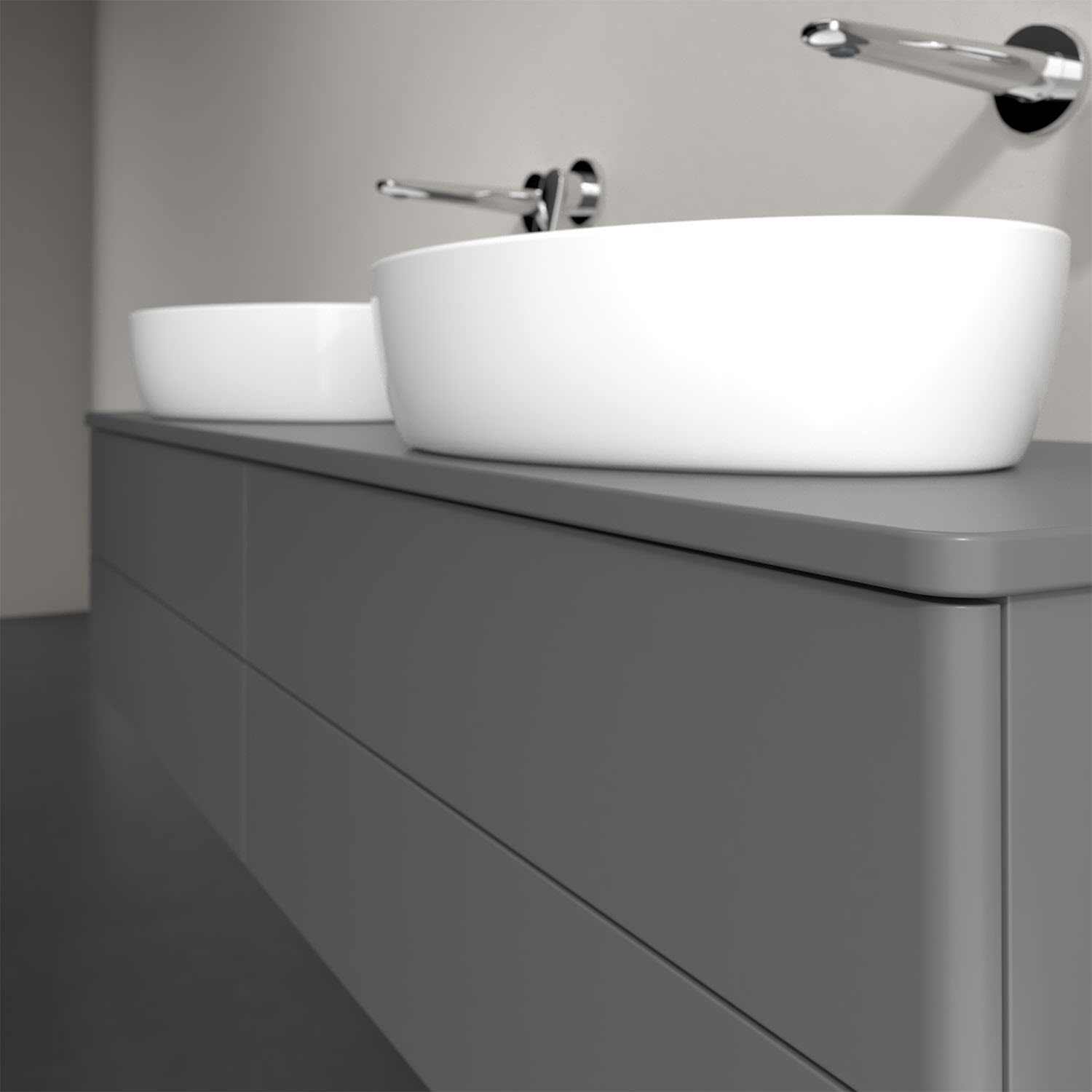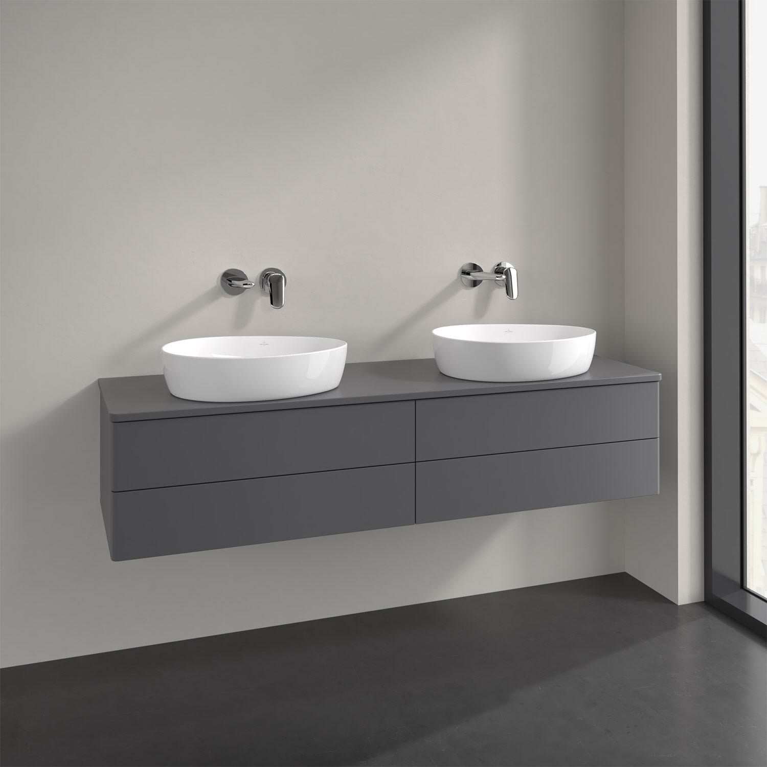 Villeroy & Boch Antao Waschbeckenunterschrank, 160 x 36 cm, 4 Auszüge mit LED-Licht, Front ohne Struktur, mit Hahnloch, für Waschtisch links und recht
