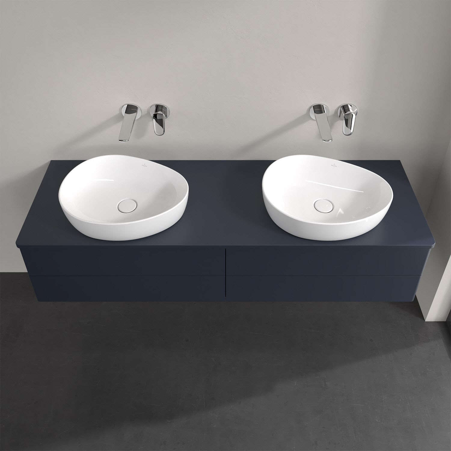 Villeroy & Boch Antao Waschbeckenunterschrank, 160 x 36 cm, 4 Auszüge mit LED-Licht, Front ohne Struktur, mit Hahnloch, für Waschtisch links und recht