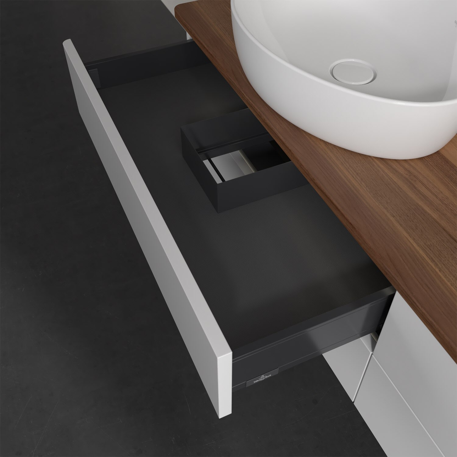 - kein Umfallen oder Verrutschen von Pflegeprodukten in den Schubladen dank rutschhemmendem Boden