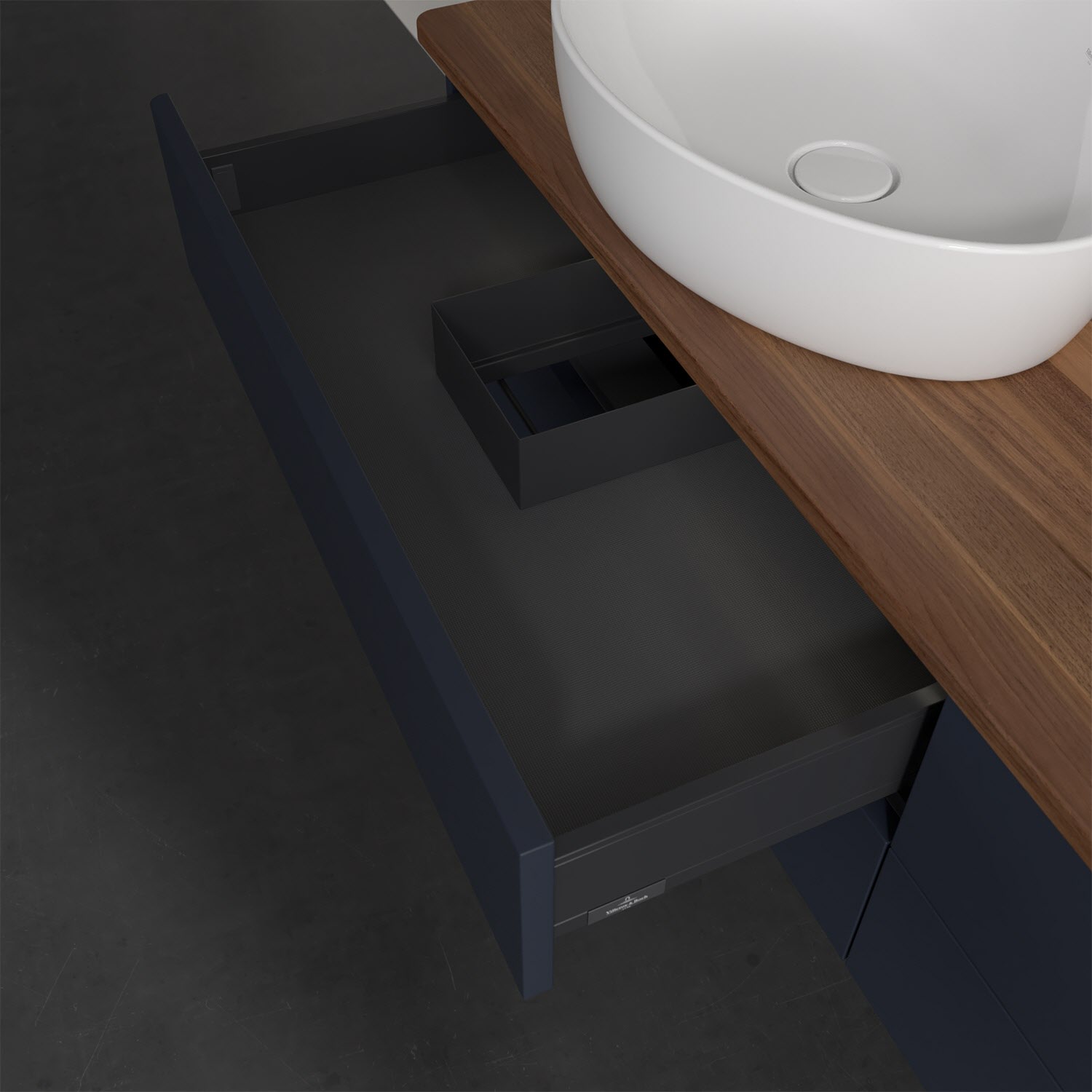 - kein Umfallen oder Verrutschen von Pflegeprodukten in den Schubladen dank rutschhemmendem Boden