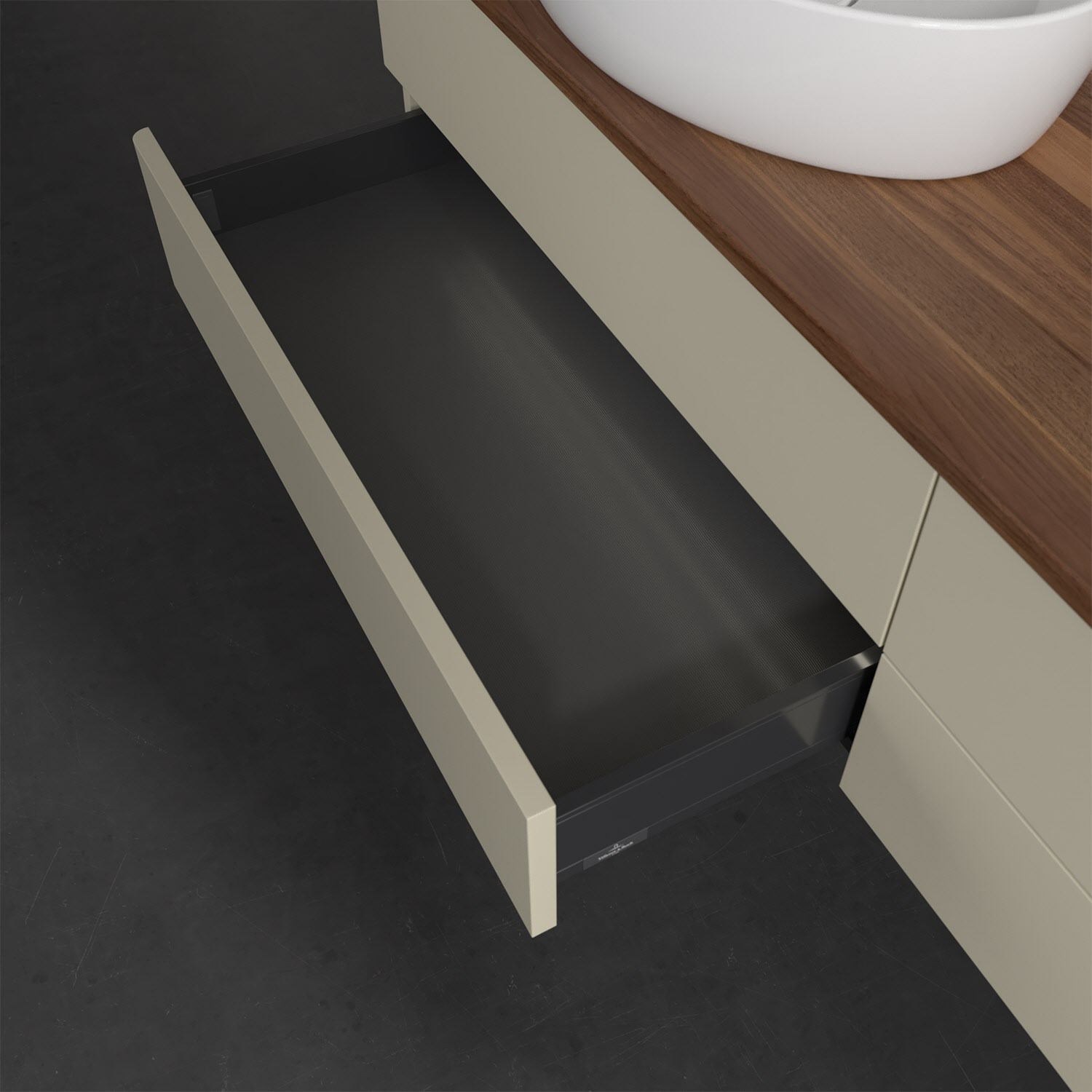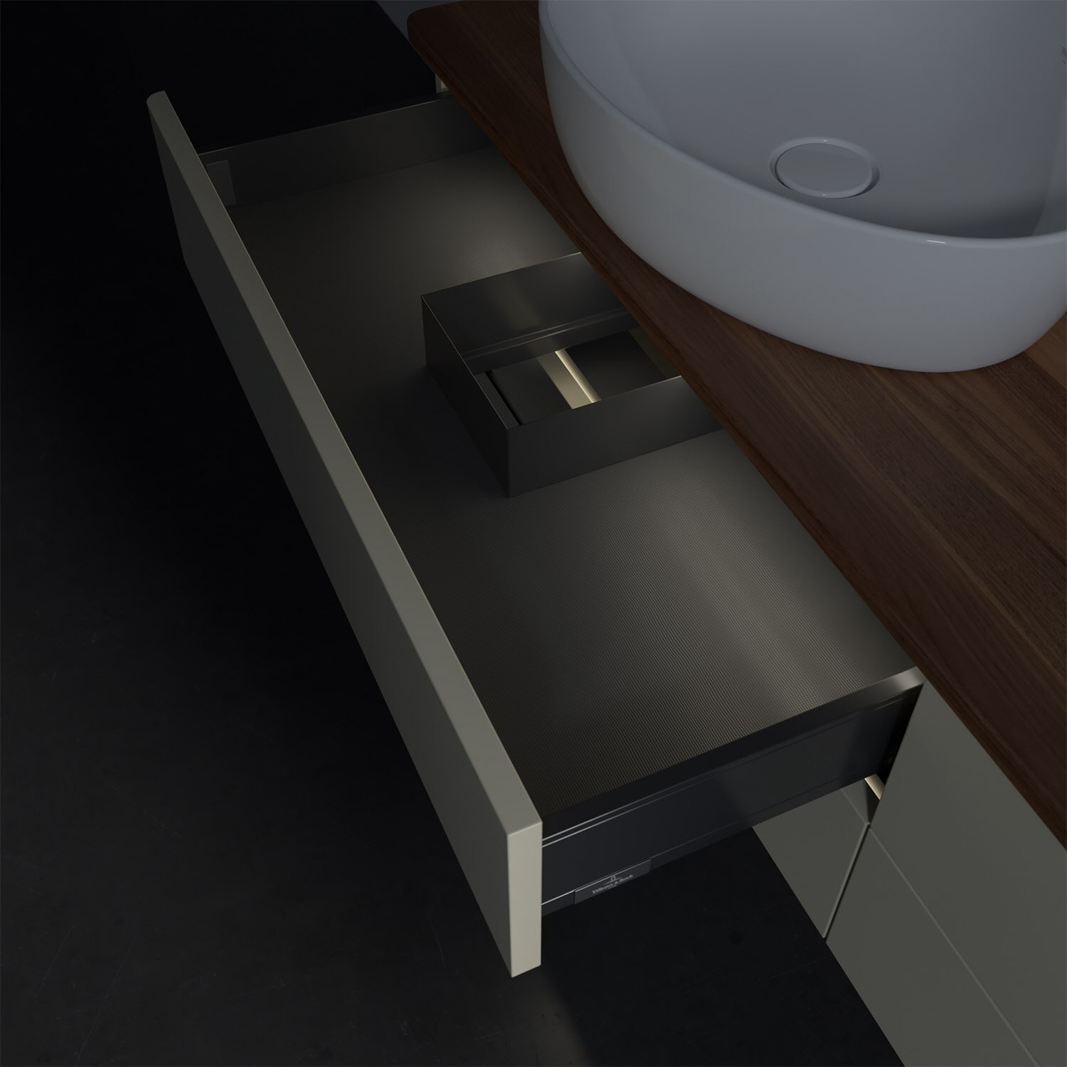 Villeroy & Boch Antao Waschbeckenunterschrank, 160 x 36 cm, 4 Auszüge mit LED-Licht, Front ohne Struktur, mit Hahnloch, für Waschtisch links und recht