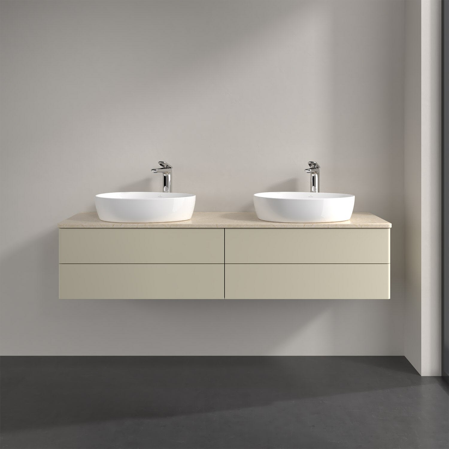 Der wandhängende Antao Waschtischunterschrank für zwei Aufsatzwaschtische bietet mit seinen vier Auszügen und seiner erstaunlichen Größe viel Platz zum Verstauen von Utensilien im Badezimmer. Inspiriert von der Natur überzeugt der Unterschrank auch optisch mit sanfter Formsprache und abgerundete Kanten. Die grifflosen Auszüge sind mit der Push-to-Open Funktion ausgestattet und verfügen über einen Antirutschboden, damit Utensilien sicher verstaut werden können. Den Überblick behält man dank der warmweißen Auszugsbeleuchtung, die sich automatisch beim Öffnen einschaltet. Mit seiner Vollauszug- und Selbsteinzug-Funktion ist der Schrank praktisch und leicht zu bedienen. Qualität von Villeroy & Boch! Für eine besonders leichte Pflege sorgt die mehrschichtig deckend lackierte Oberfläche. Bei der Ausführung in Massivholz wird dank des verarbeiteten Massivholzes jedes Möbel zu einem Unikat, das sich durch das lebendige Naturmaterial durch seine einzigartige Struktur und Maserung auszeichnet.