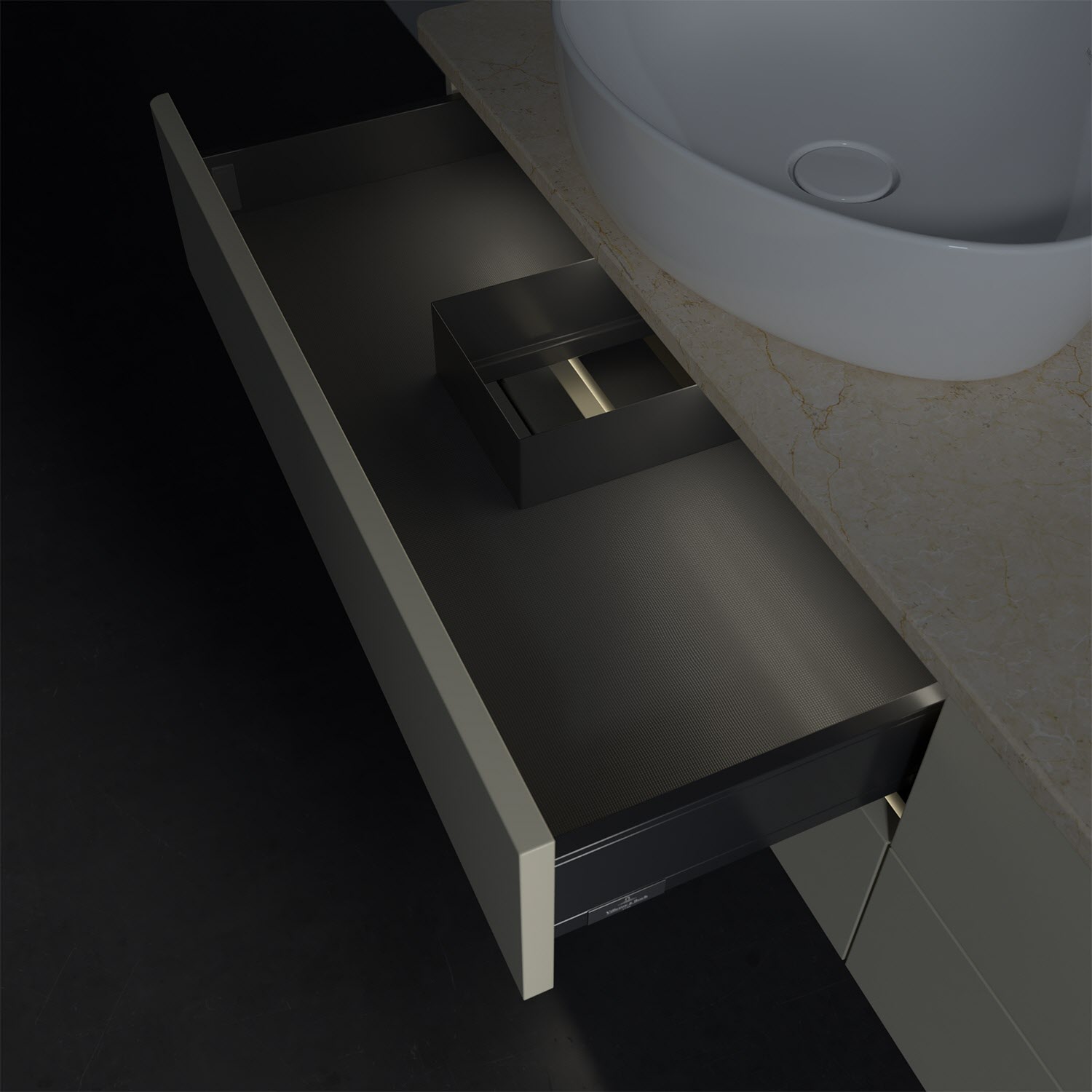 - kein Umfallen oder Verrutschen von Pflegeprodukten in den Schubladen dank rutschhemmendem Boden