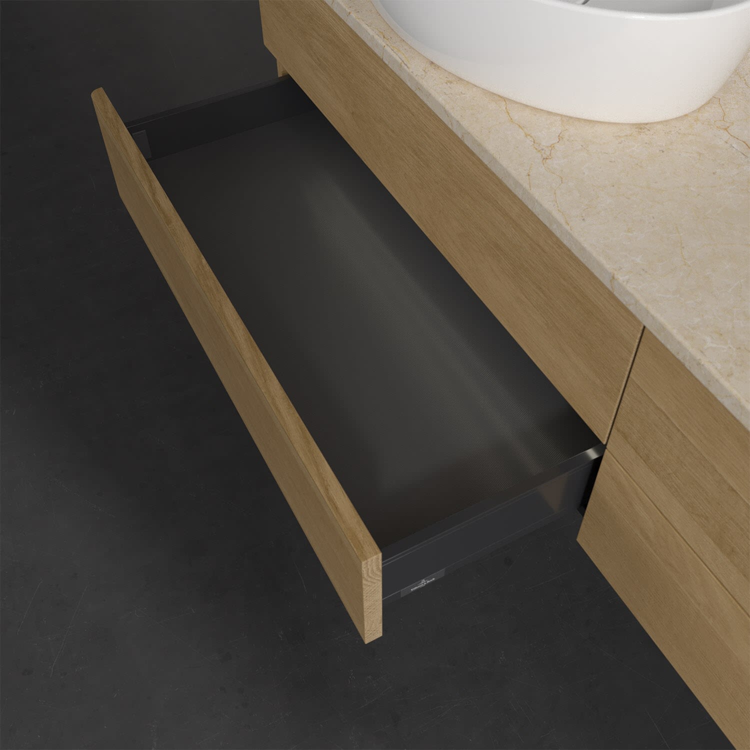 - kein Umfallen oder Verrutschen von Pflegeprodukten in den Schubladen dank rutschhemmendem Boden