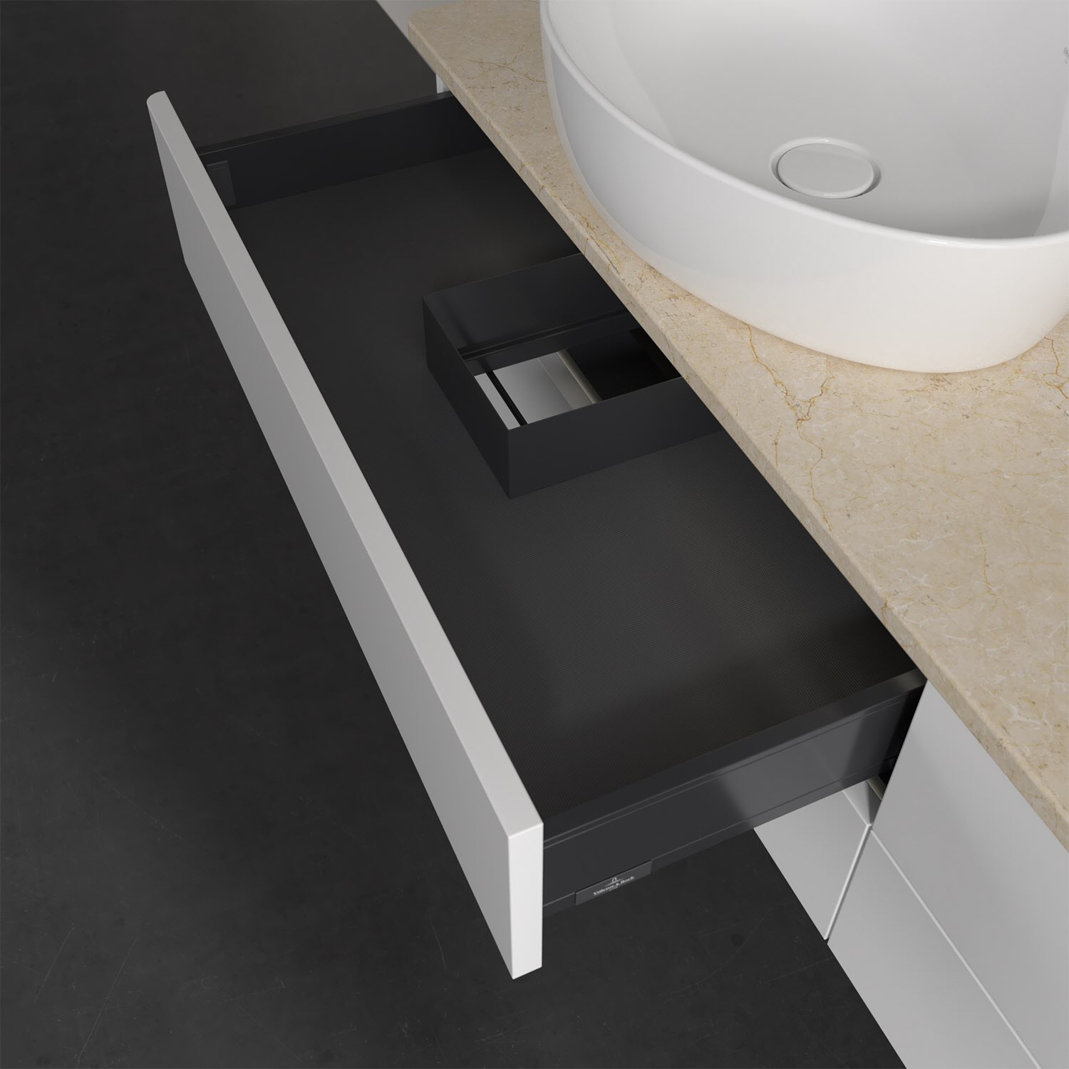 - kein Umfallen oder Verrutschen von Pflegeprodukten in den Schubladen dank rutschhemmendem Boden