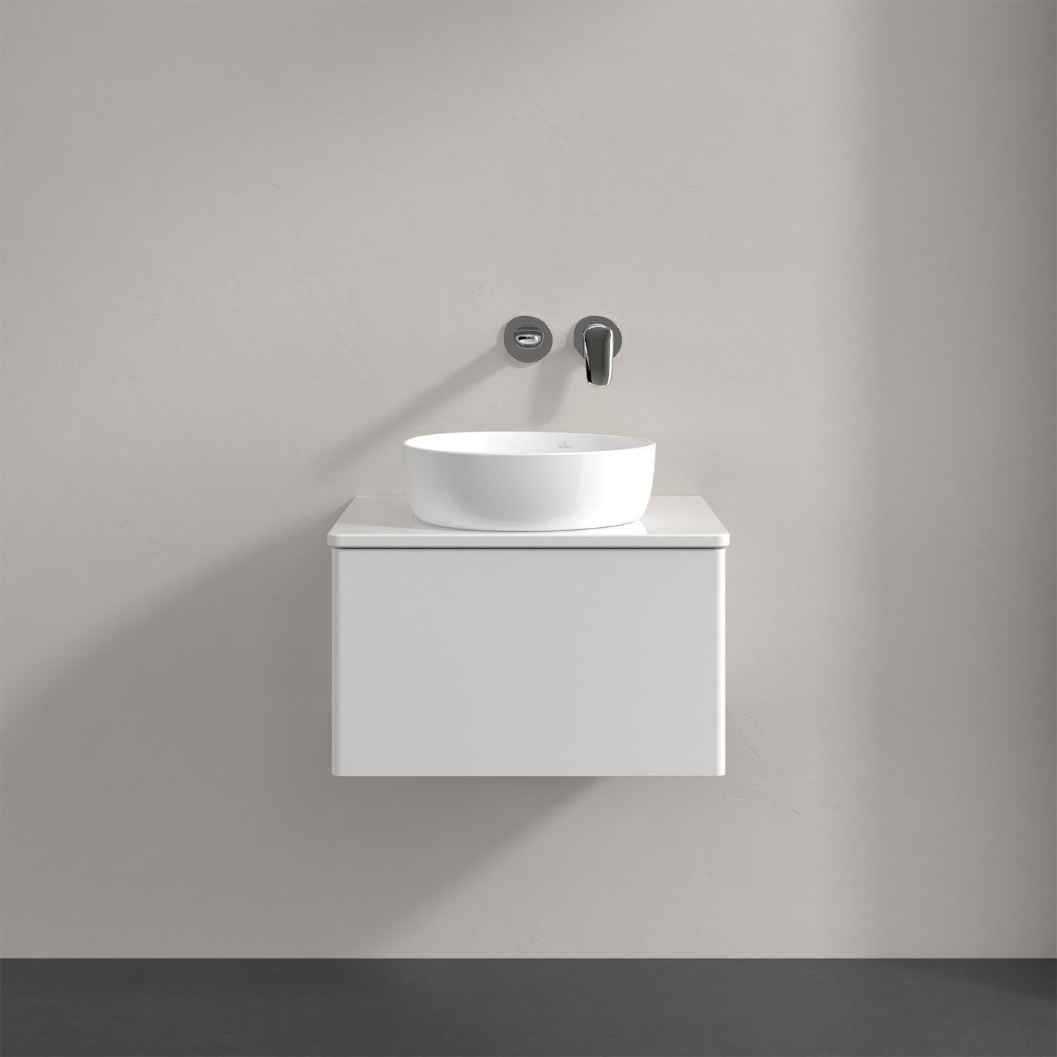 Wenig Platz im Badezimmer und dennoch soll es gemütlich und ordentlich sein? Dann ist der wandhängende Antao Waschtischunterschrank mit seinen sanft abgerundeten Kanten die ideale Lösung. Das geräumige Möbel bietet ausreichend Stauraum für alle nötigen Badutensilien. Zum Öffnen genügt dank der Push-to-Open Funktion ein leichter Druck auf den extra hohen Auszug, der sich dann in seiner vollen Tiefe öffnet. Dabei wird gleichzeitig die angenehme Auszugsbeleuchtung in Warmweiß aktiviert. Das garantiert den benötigen Überblick! Praktisch ist auch der integrierte Antirutschboden und die SoftClosing Funktion, die ein Umfallen oder Verrutschen der verstauten Produkte verhindern. Villeroy & Boch hat alles durchdacht! Für eine besonders leichte Pflege sorgt die mehrschichtig deckend lackierte Oberfläche.
