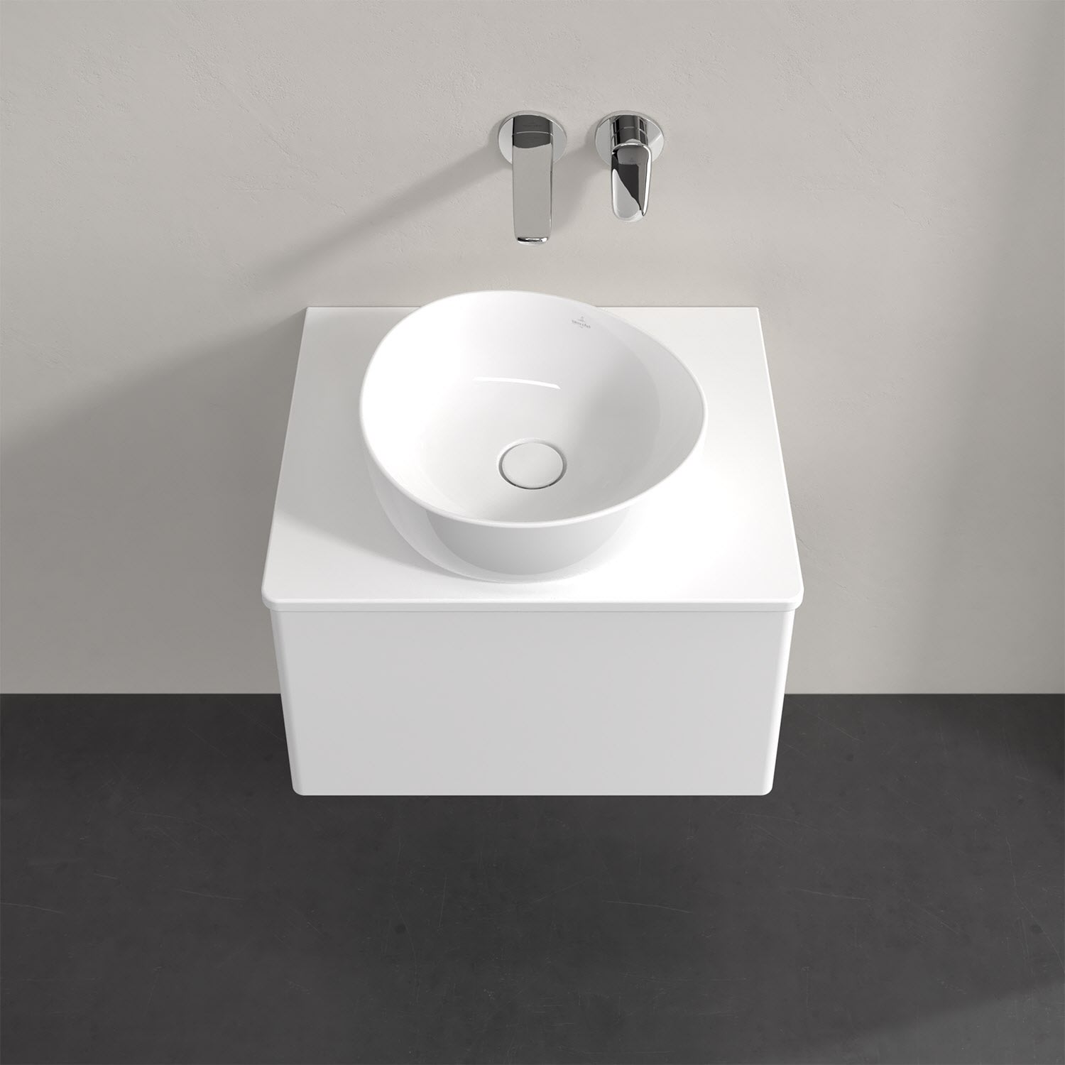 Für diesen Waschbeckenunterschrank stehen Ihnen Aufsatzwaschtische aus verschiedenen Serien zur Verfügung (siehe "Passliste" unter Downloads). Ein ausgewähltes Beispiel finden Sie im Zubehör. Den Waschtisch bitte separat mitbestellen.