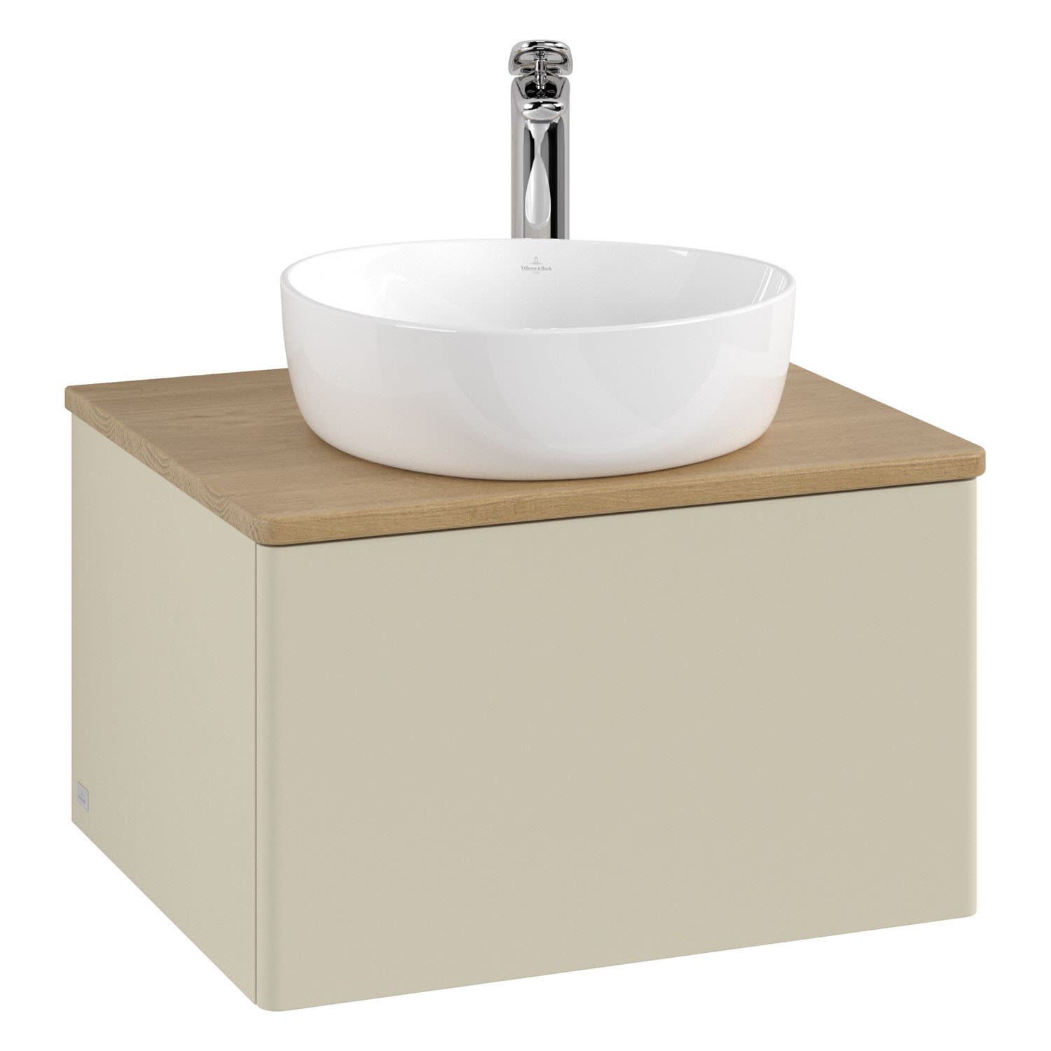 Villeroy & Boch Antao Waschbeckenunterschrank, 60 x 36 cm, 1 Auszug mit LED-Licht, Front ohne Struktur, mit Hahnloch