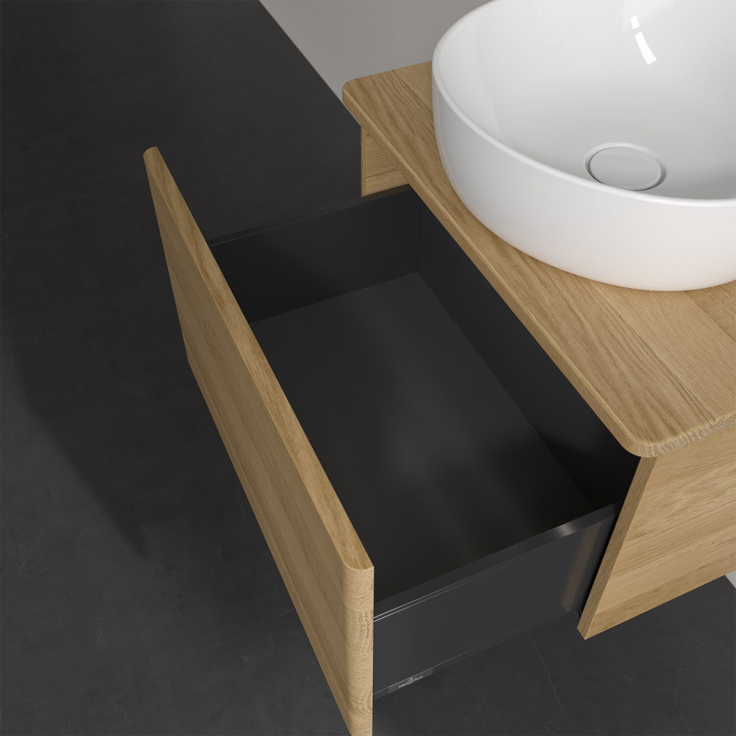 Wenig Platz im Badezimmer und dennoch soll es gemütlich und ordentlich sein? Dann ist der wandhängende Antao Waschtischunterschrank mit seinen sanft abgerundeten Kanten die ideale Lösung. Das geräumige Möbel bietet ausreichend Stauraum für alle nötigen Badutensilien. Zum Öffnen genügt dank der Push-to-Open Funktion ein leichter Druck auf den extra hohen Auszug, der sich dann in seiner vollen Tiefe öffnet. Dabei wird gleichzeitig die angenehme Auszugsbeleuchtung in Warmweiß aktiviert. Das garantiert den benötigen Überblick! Praktisch ist auch der integrierte Antirutschboden und die SoftClosing Funktion, die ein Umfallen oder Verrutschen der verstauten Produkte verhindern. Villeroy & Boch hat alles durchdacht! Für eine besonders leichte Pflege sorgt die mehrschichtig deckend lackierte Oberfläche. Bei der Ausführung in Massivholz wird dank des verarbeiteten Massivholzes jedes Möbel zu einem Unikat, das sich durch das lebendige Naturmaterial durch seine einzigartige Struktur und Maserung auszeichnet.