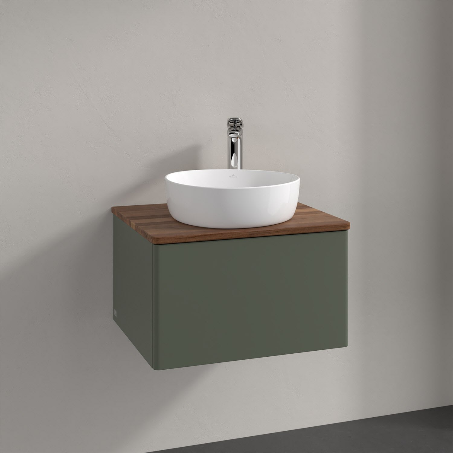 Villeroy & Boch Antao Waschbeckenunterschrank, 60 x 36 cm, 1 Auszug mit LED-Licht, Front ohne Struktur, mit Hahnloch