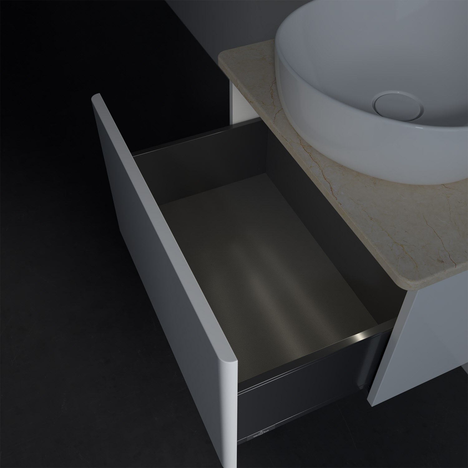 - kein Umfallen oder Verrutschen von Pflegeprodukten in den Schubladen dank rutschhemmendem Boden