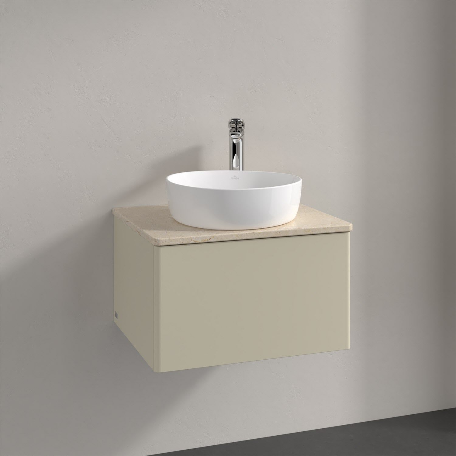 Villeroy & Boch Antao Waschbeckenunterschrank, 60 x 36 cm, 1 Auszug mit LED-Licht, Front ohne Struktur, mit Hahnloch