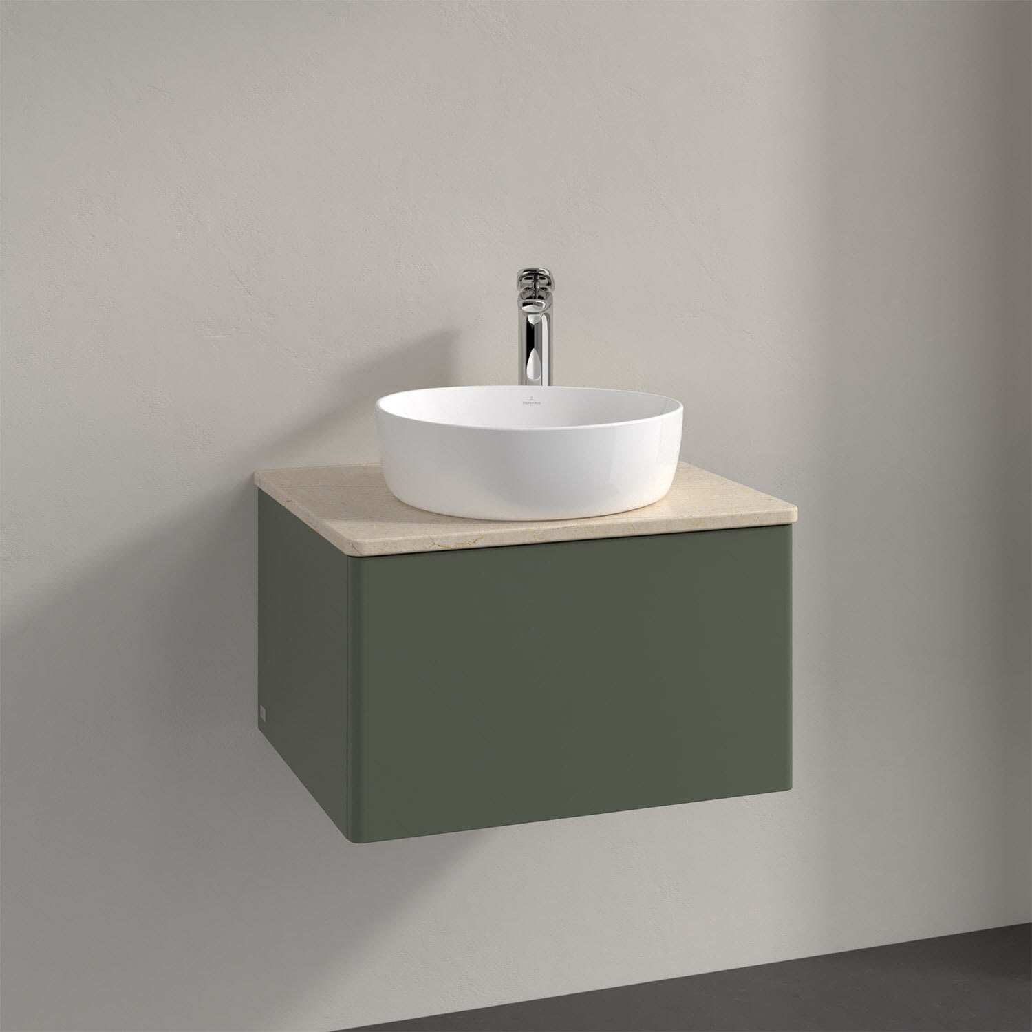 Villeroy & Boch Antao Waschbeckenunterschrank, 60 x 36 cm, 1 Auszug mit LED-Licht, Front ohne Struktur, mit Hahnloch