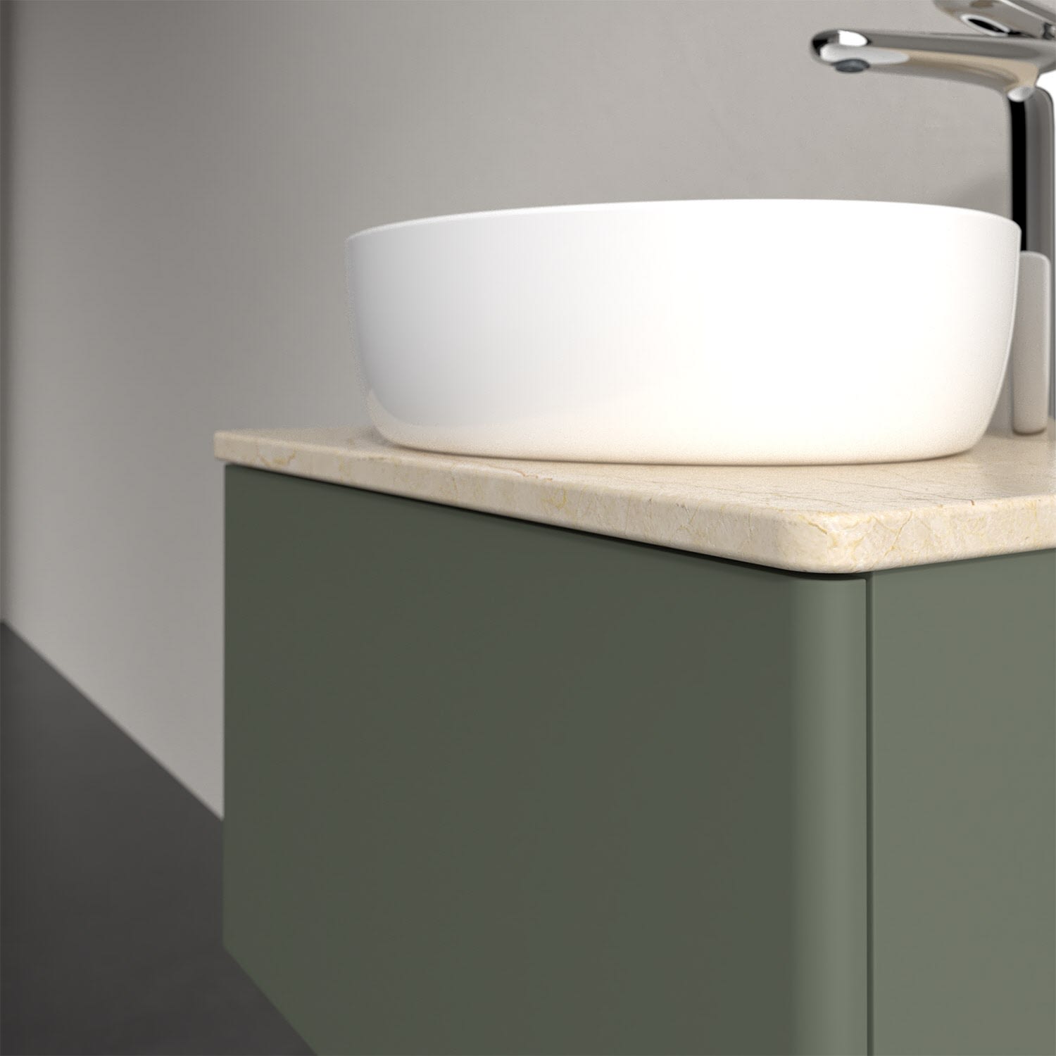 Wenig Platz im Badezimmer und dennoch soll es gemütlich und ordentlich sein? Dann ist der wandhängende Antao Waschtischunterschrank mit seinen sanft abgerundeten Kanten die ideale Lösung. Das geräumige Möbel bietet ausreichend Stauraum für alle nötigen Badutensilien. Zum Öffnen genügt dank der Push-to-Open Funktion ein leichter Druck auf den extra hohen Auszug, der sich dann in seiner vollen Tiefe öffnet. Dabei wird gleichzeitig die angenehme Auszugsbeleuchtung in Warmweiß aktiviert. Das garantiert den benötigen Überblick! Praktisch ist auch der integrierte Antirutschboden und die SoftClosing Funktion, die ein Umfallen oder Verrutschen der verstauten Produkte verhindern. Villeroy & Boch hat alles durchdacht! Für eine besonders leichte Pflege sorgt die mehrschichtig deckend lackierte Oberfläche. Bei der Ausführung in Massivholz wird dank des verarbeiteten Massivholzes jedes Möbel zu einem Unikat, das sich durch das lebendige Naturmaterial durch seine einzigartige Struktur und Maserung auszeichnet.