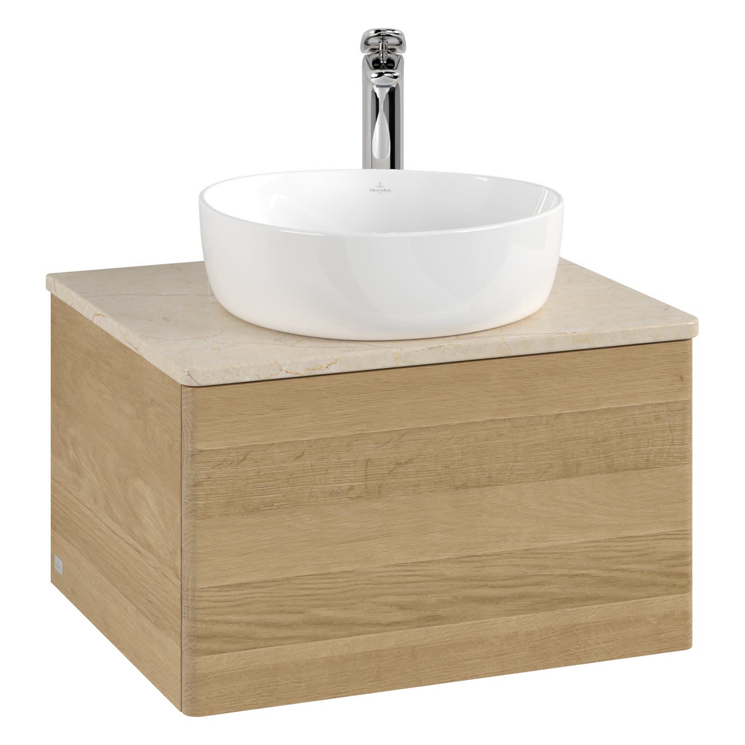 Villeroy & Boch Antao Waschbeckenunterschrank, 60 x 36 cm, 1 Auszug mit LED-Licht, Front ohne Struktur, mit Hahnloch