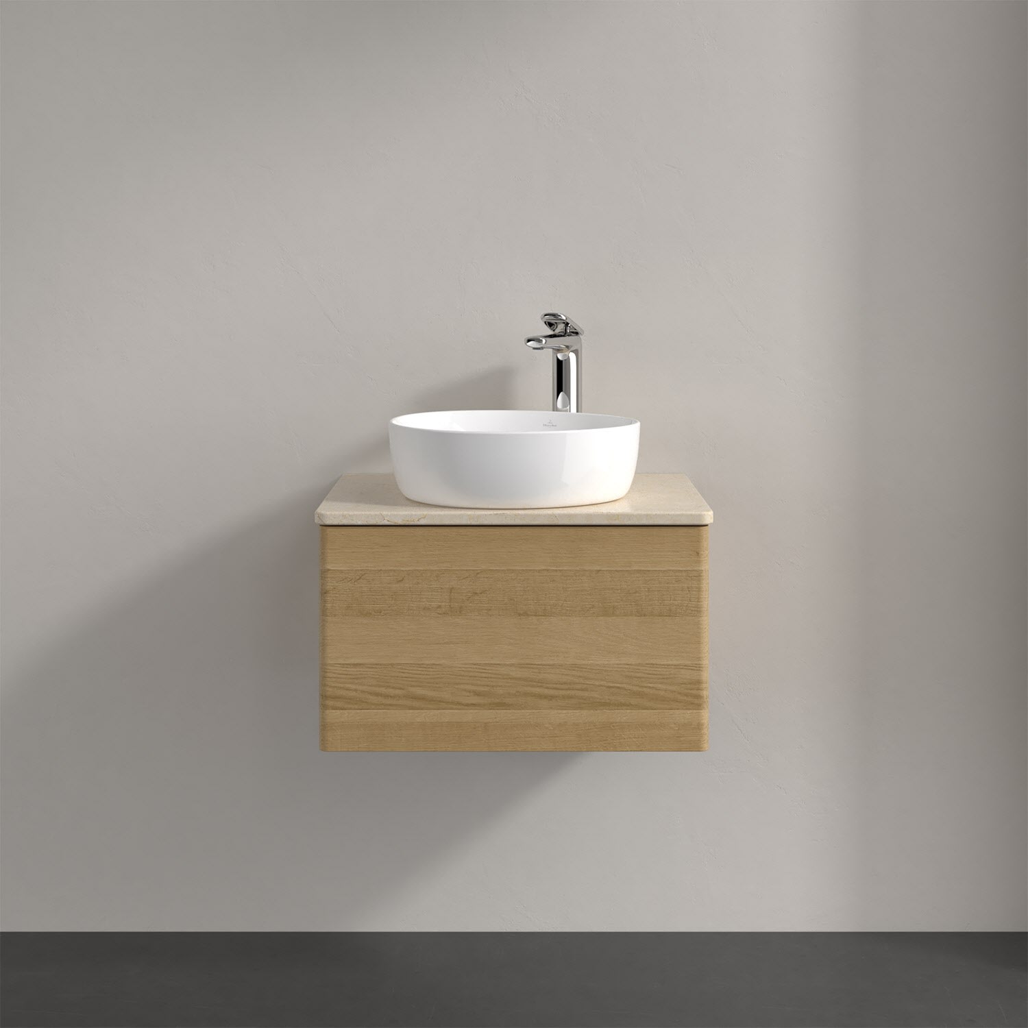 Für diesen Waschbeckenunterschrank stehen Ihnen Aufsatzwaschtische aus verschiedenen Serien zur Verfügung (siehe "Passliste" unter Downloads). Ein ausgewähltes Beispiel finden Sie im Zubehör. Den Waschtisch bitte separat mitbestellen.