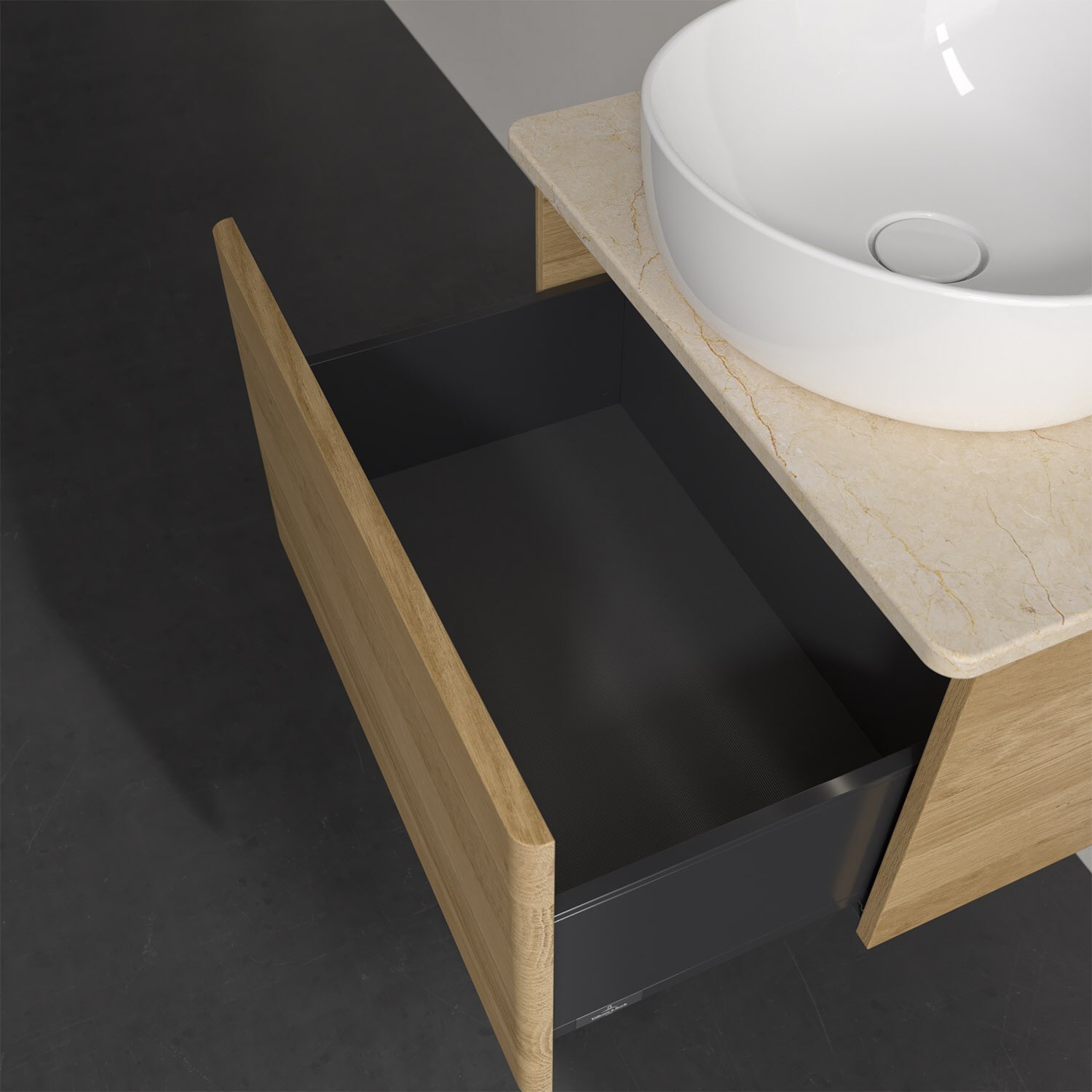 Wenig Platz im Badezimmer und dennoch soll es gemütlich und ordentlich sein? Dann ist der wandhängende Antao Waschtischunterschrank mit seinen sanft abgerundeten Kanten die ideale Lösung. Das geräumige Möbel bietet ausreichend Stauraum für alle nötigen Badutensilien. Zum Öffnen genügt dank der Push-to-Open Funktion ein leichter Druck auf den extra hohen Auszug, der sich dann in seiner vollen Tiefe öffnet. Dabei wird gleichzeitig die angenehme Auszugsbeleuchtung in Warmweiß aktiviert. Das garantiert den benötigen Überblick! Praktisch ist auch der integrierte Antirutschboden und die SoftClosing Funktion, die ein Umfallen oder Verrutschen der verstauten Produkte verhindern. Villeroy & Boch hat alles durchdacht! Für eine besonders leichte Pflege sorgt die mehrschichtig deckend lackierte Oberfläche. Bei der Ausführung in Massivholz wird dank des verarbeiteten Massivholzes jedes Möbel zu einem Unikat, das sich durch das lebendige Naturmaterial durch seine einzigartige Struktur und Maserung auszeichnet.