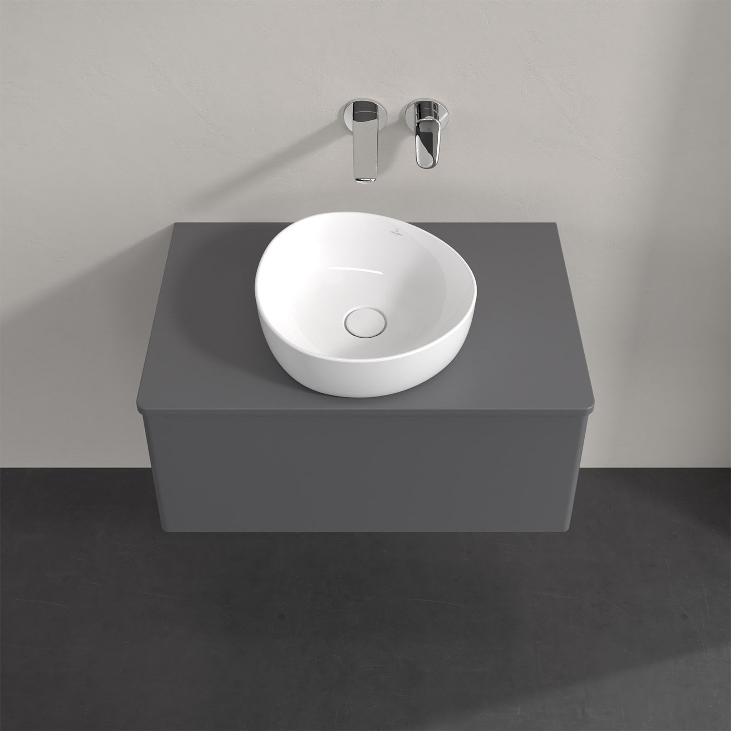 Für diesen Waschbeckenunterschrank stehen Ihnen Aufsatzwaschtische aus verschiedenen Serien zur Verfügung (siehe "Passliste" unter Downloads). Ein ausgewähltes Beispiel finden Sie im Zubehör. Den Waschtisch bitte separat mitbestellen.