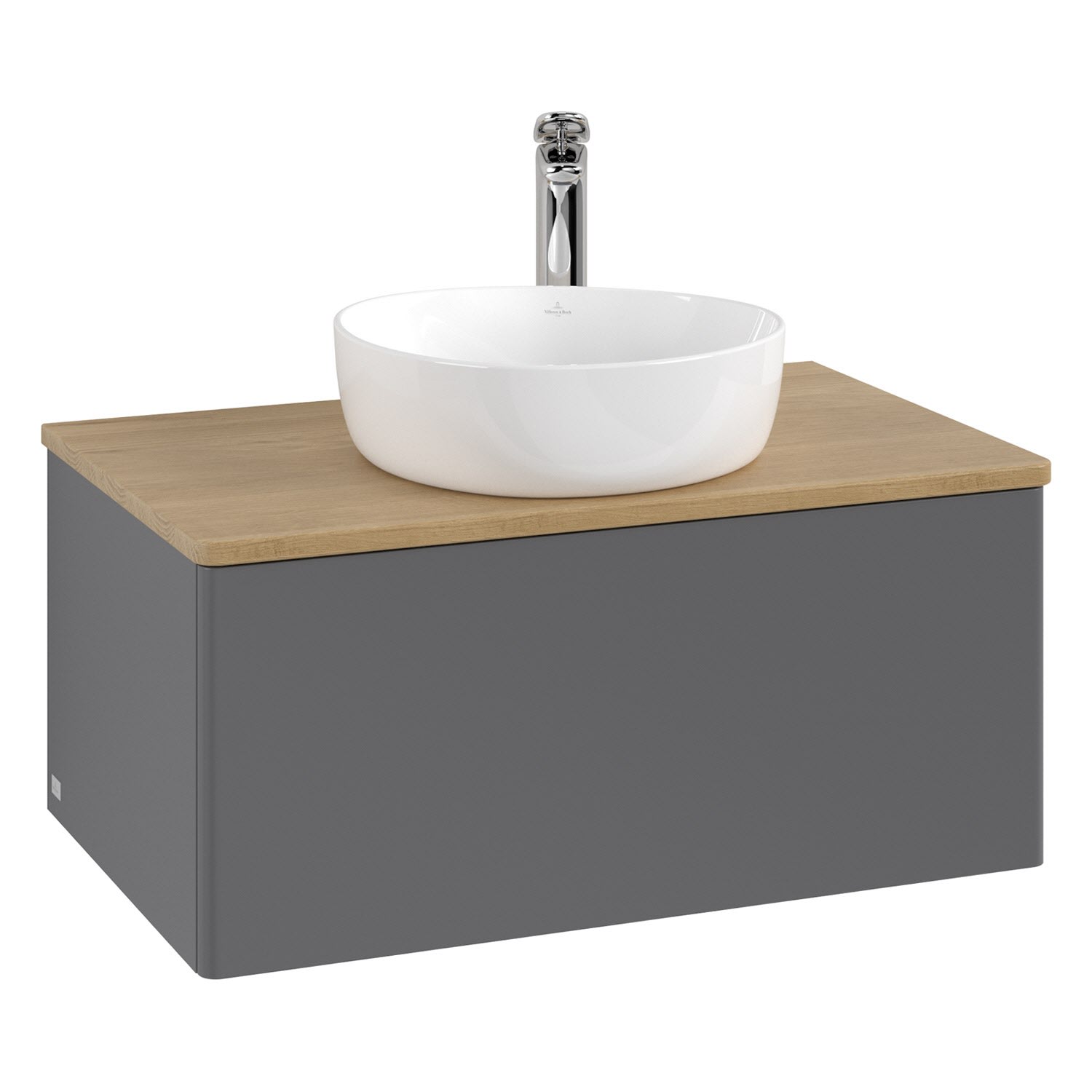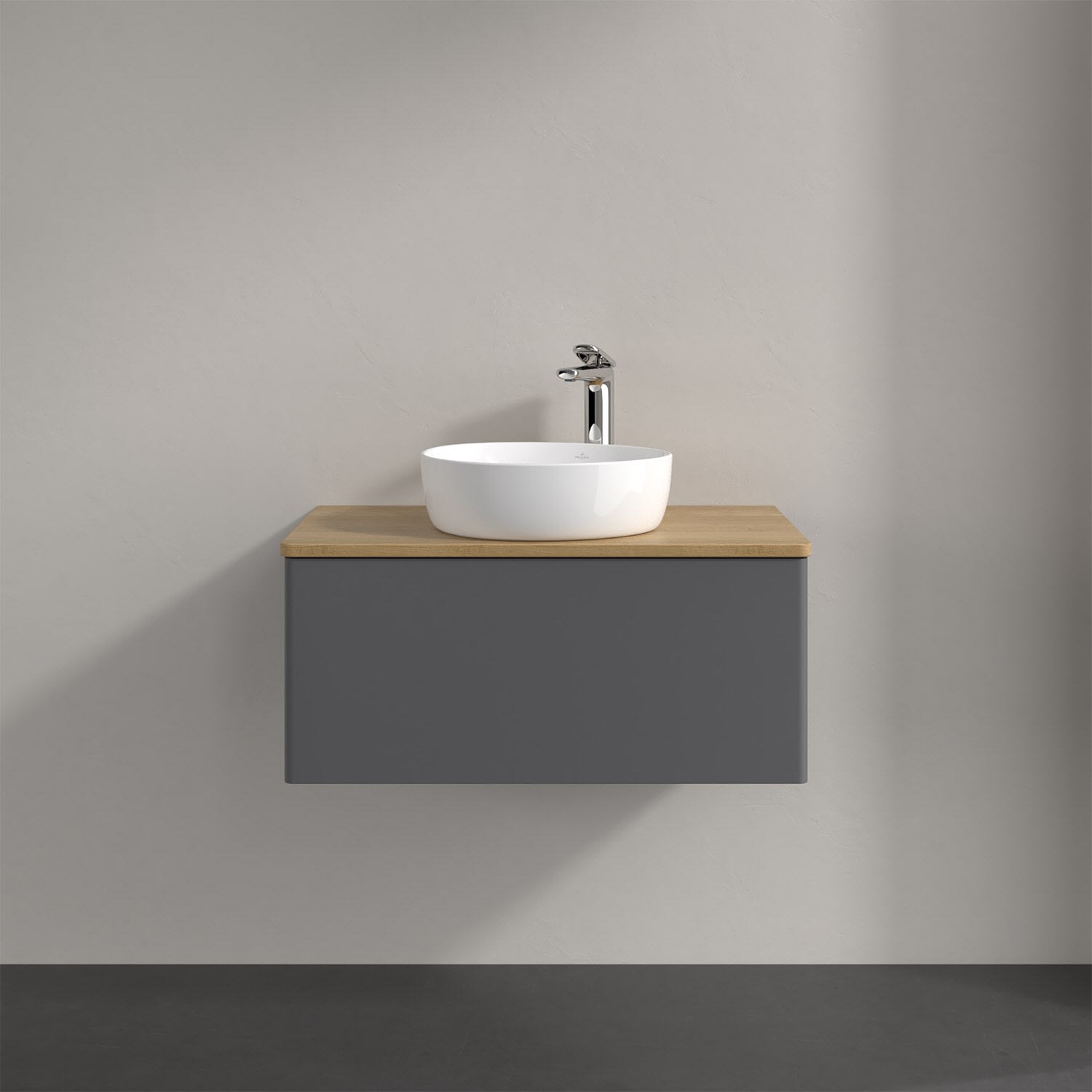Villeroy & Boch Antao Waschbeckenunterschrank, 80 x 36 cm, 1 Auszug mit LED-Licht, Front ohne Struktur, mit Hahnloch